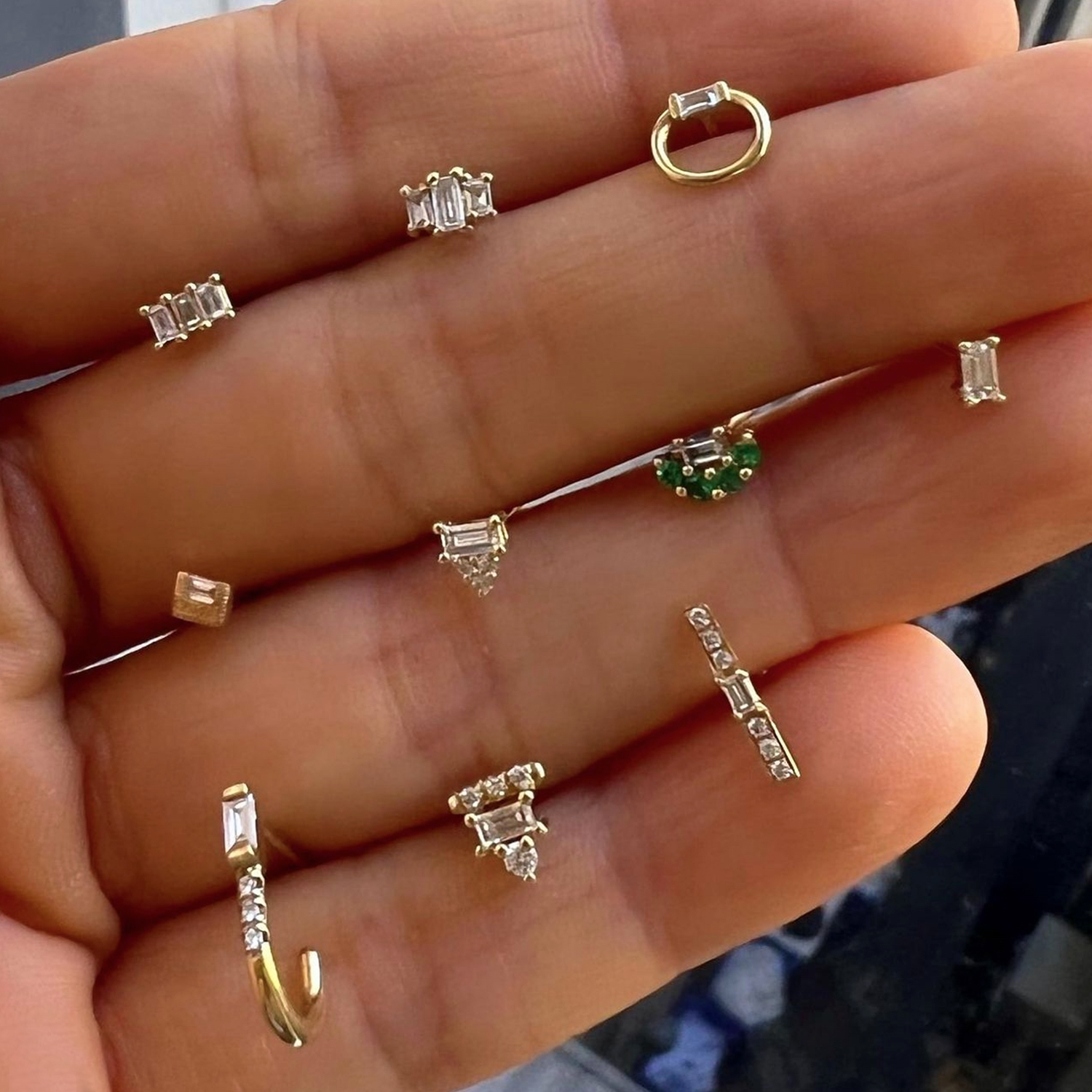 Baguette Diamond & Emerald 3 Dot Threadless End