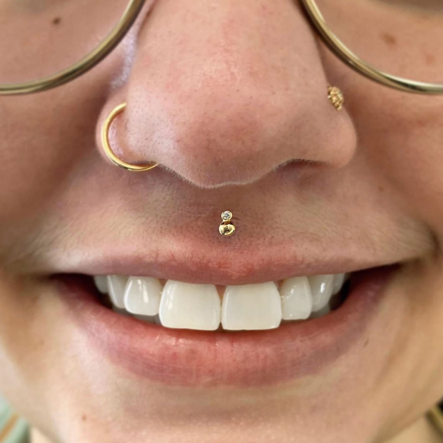 There are several variations of lip piercings, including the philtrum, standard labret piercings, and more.