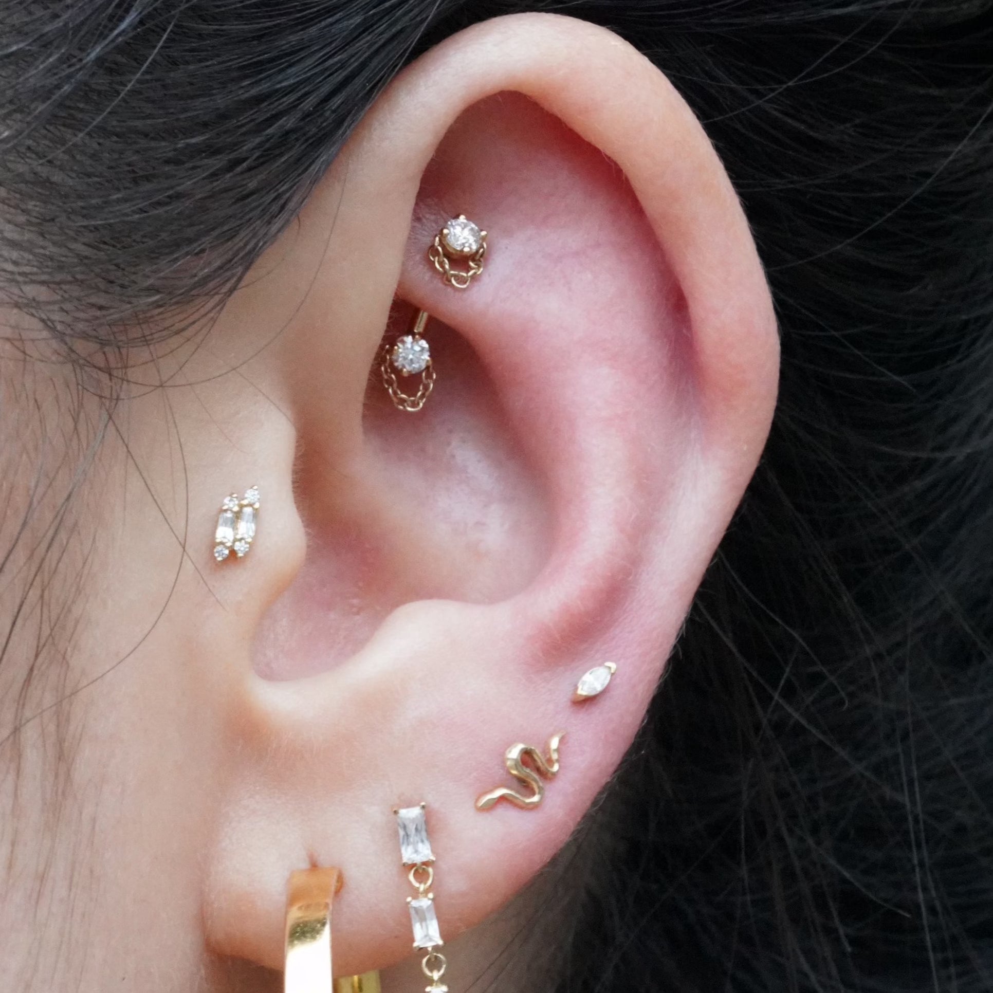 Hypoallergenic, nickel-safe 14k yellow, rose or white gold, made for wear in piercings.