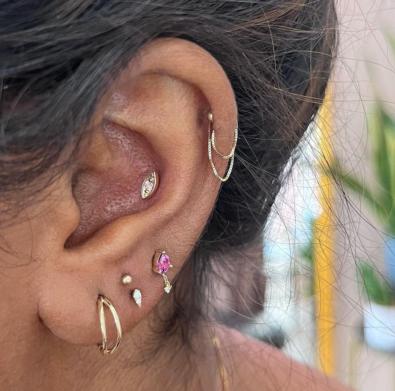 The Bogo seam ring is the perfect piece to give the illusion of two rings in one piercing. Perfect for any applicable piercing, including across the ear, nostril, and septum.
