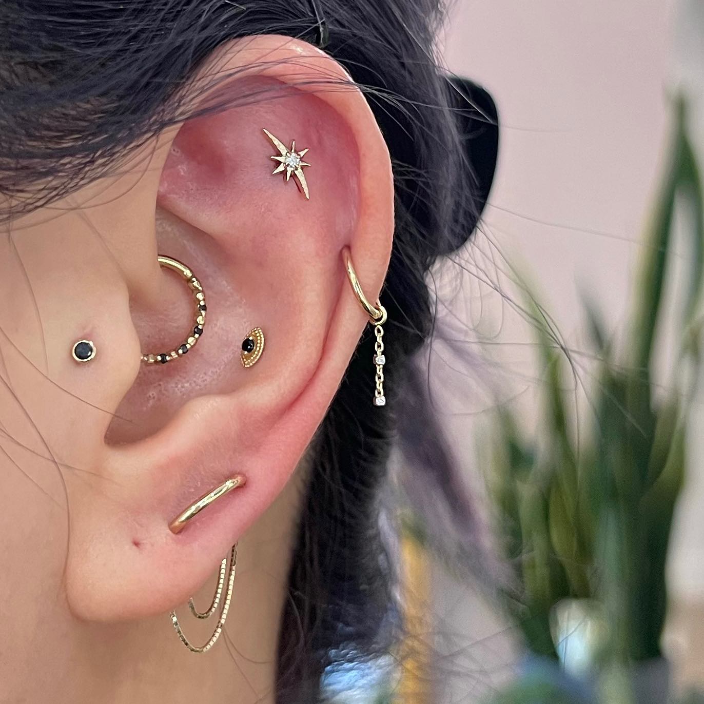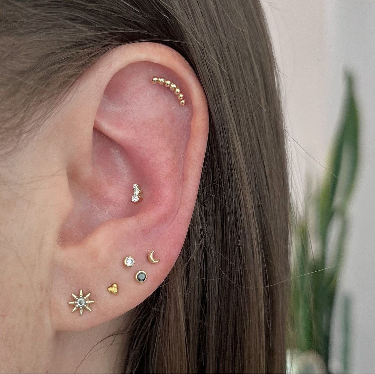 Hypoallergenic, nickel-safe 14k yellow gold, made for wear in piercings.