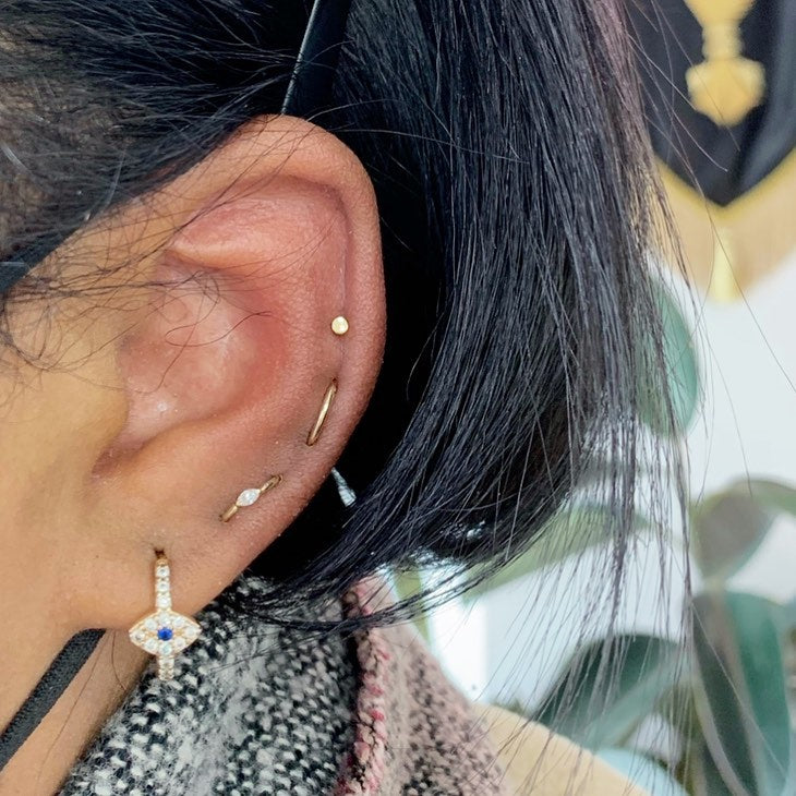 Hypoallergenic, nickel-safe 14k yellow, white or rose gold, made for wear in piercings.