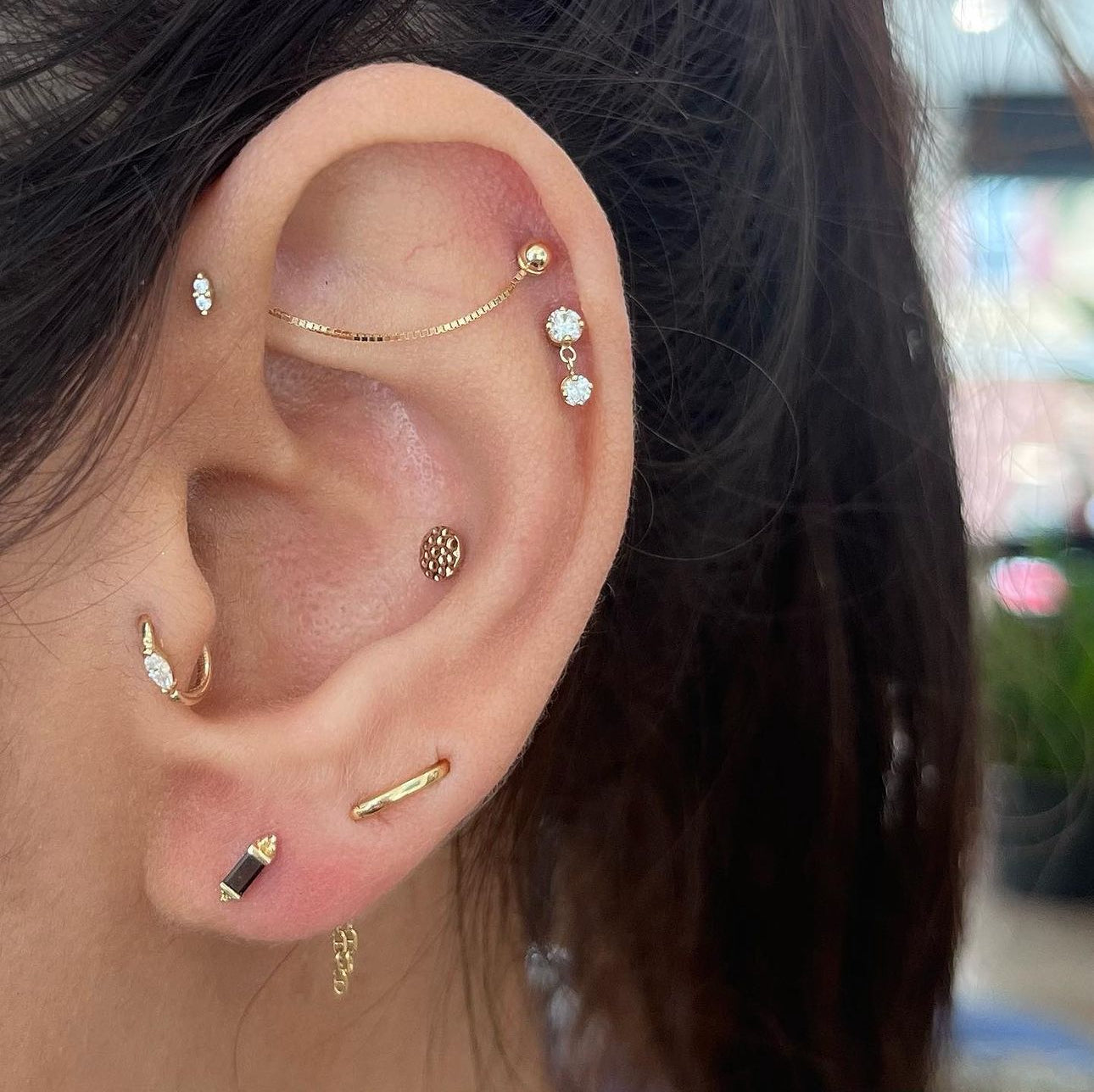 Hypoallergenic, nickel-safe 14k yellow, rose or white gold, made for wear in piercings.