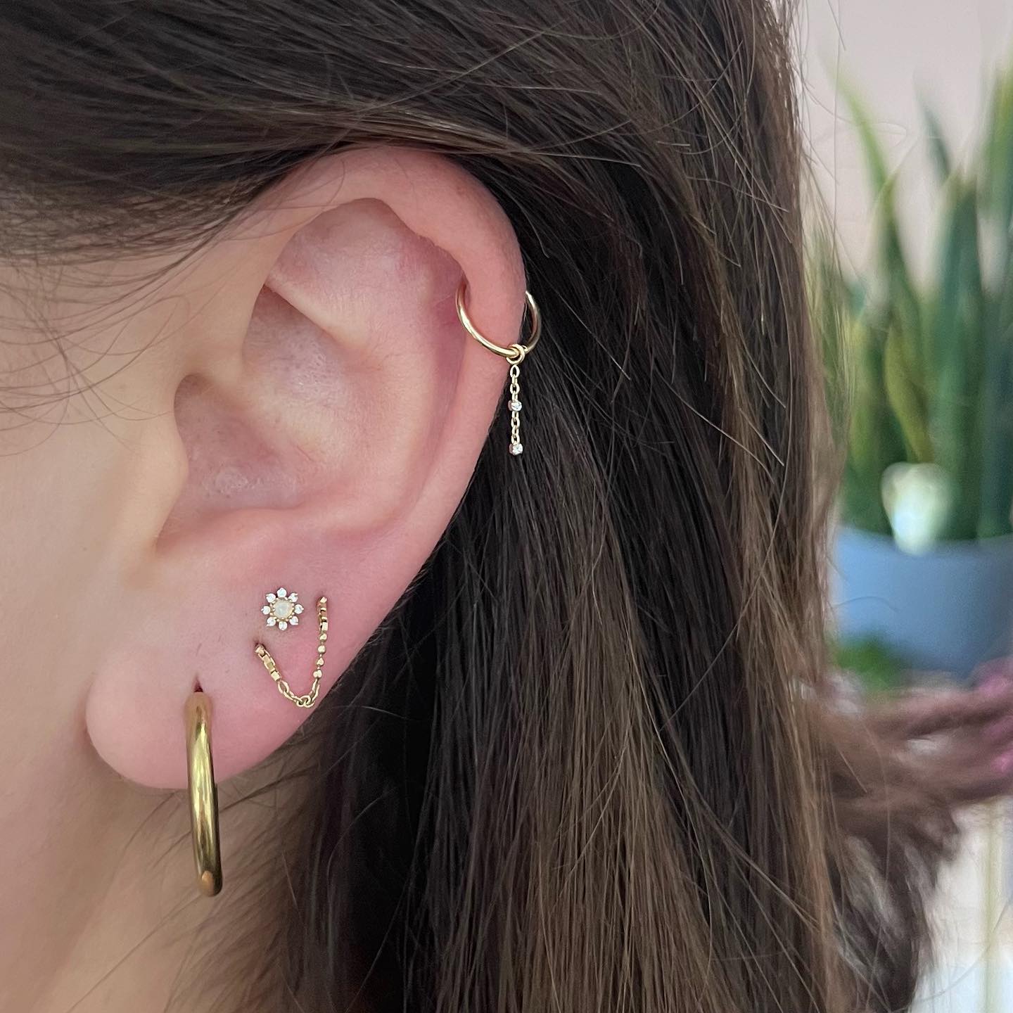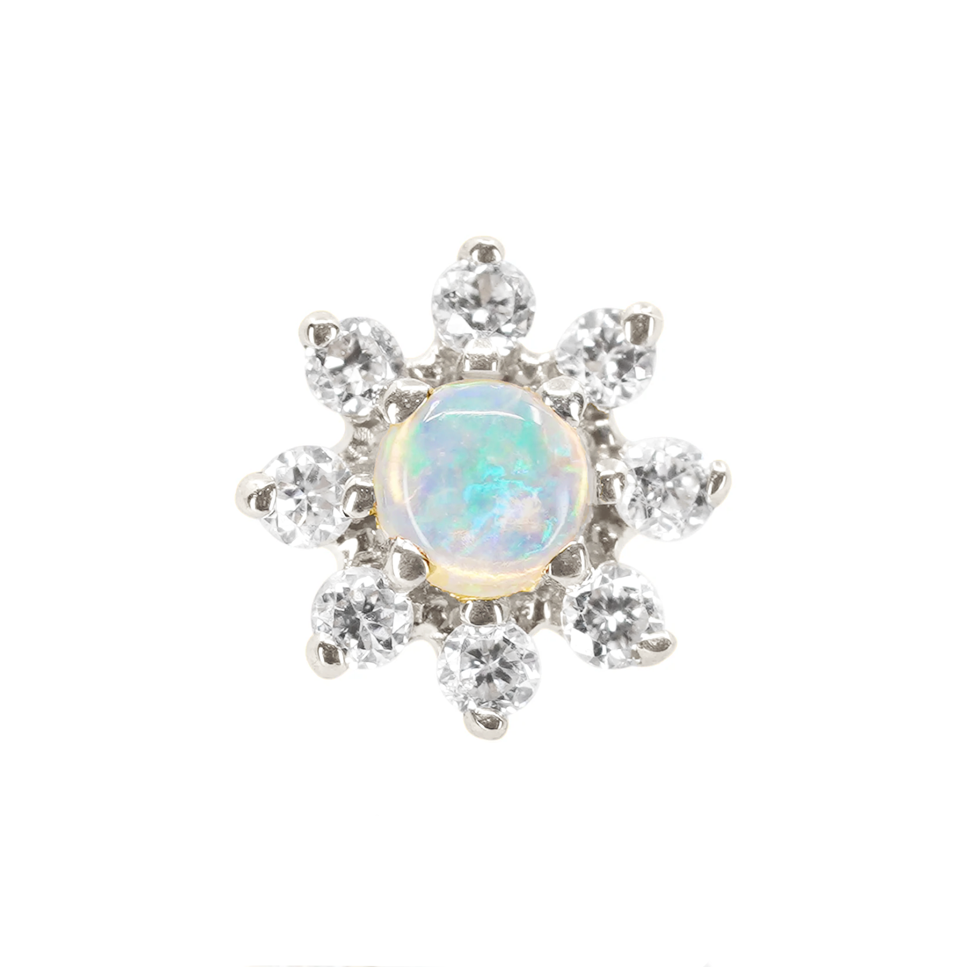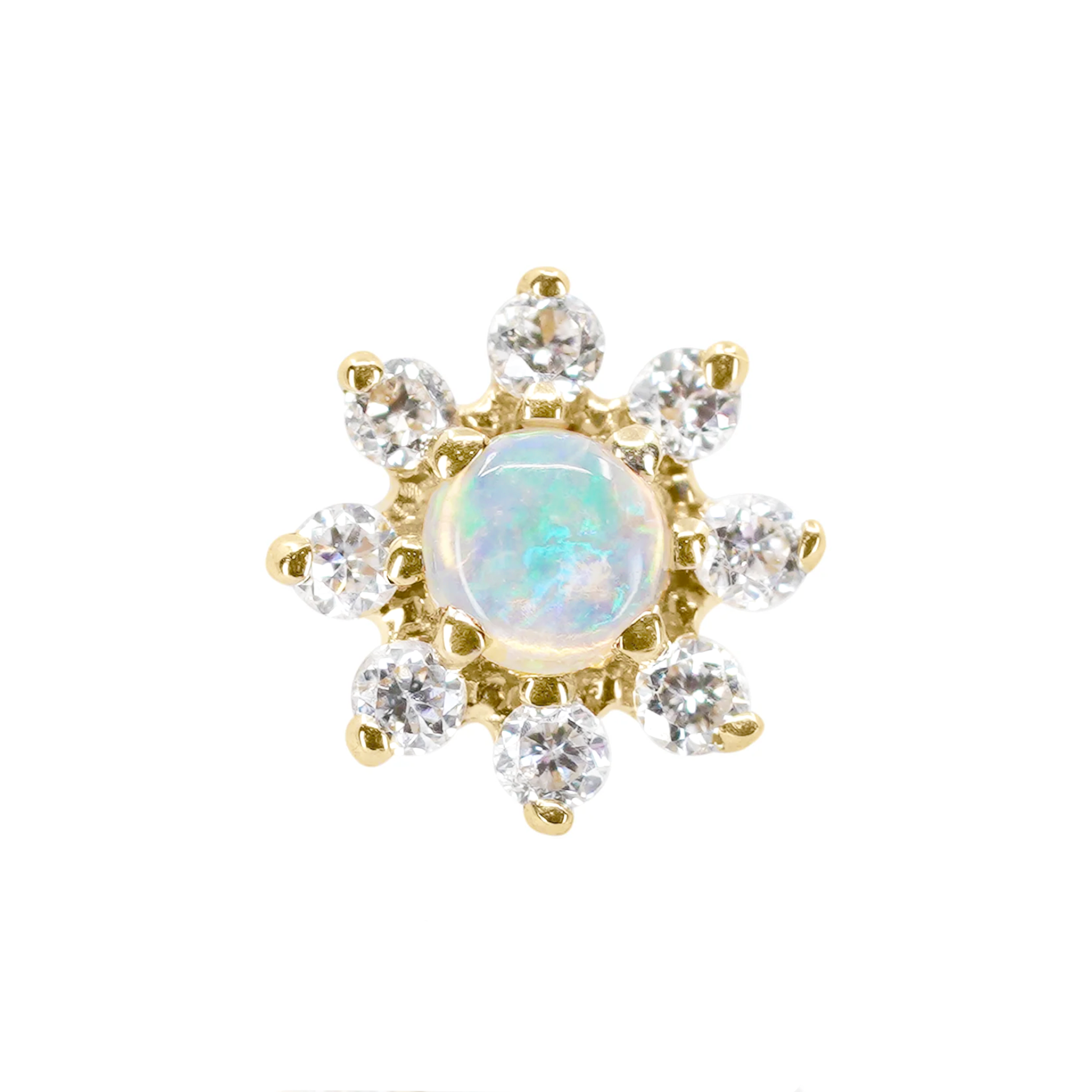 This delicate Mini Athena flower comes with your choice of gemstone in the center and a halo of eight bright diamonds. This piece is versatile due to its smaller size (4mm), making it a perfect subtle pop of color across the ear, nostril and lip piercings.