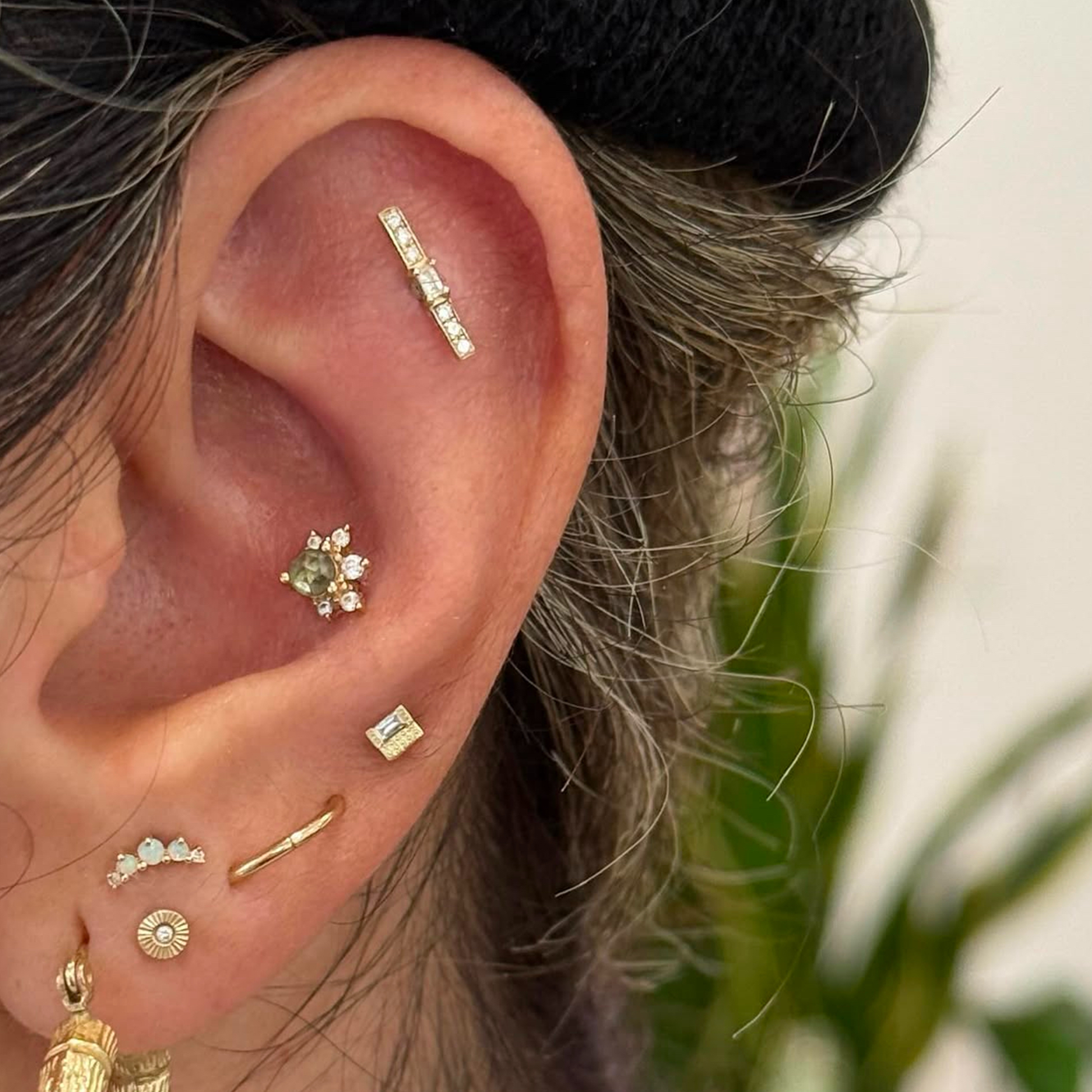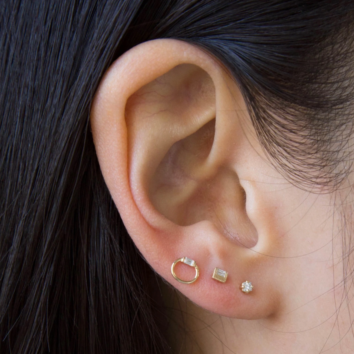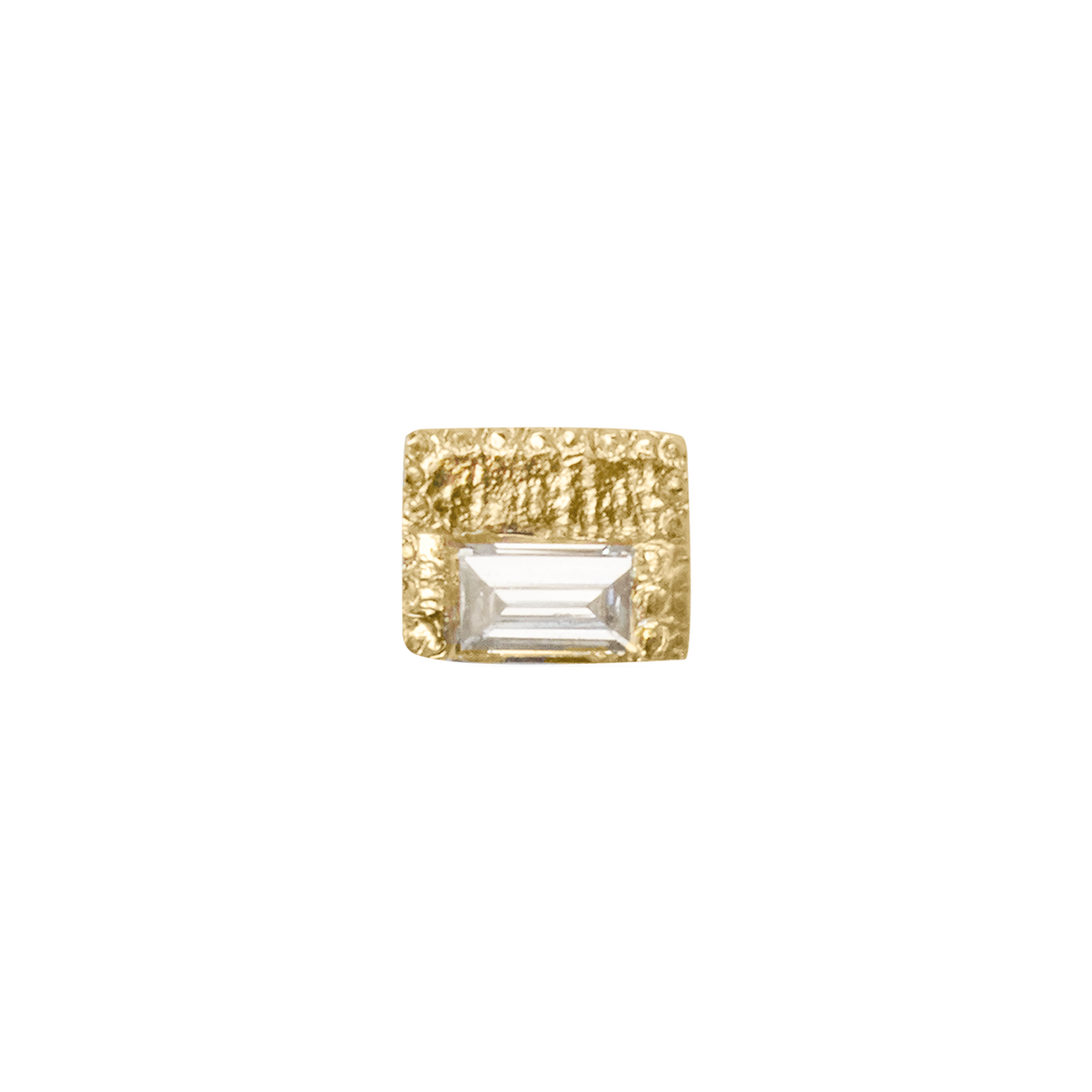 From our exclusive body jewelry collection with Jennie Kwon Designs, the tiny Baguette Block threadless end is "One of our favorites. So seemingly straight forward, but we love the subtle milgrain detail on this stud, as well as how the baguette diamond and the block of gold meld seamlessly into each other. She's small but noticeable and a piece that will bring you joy."