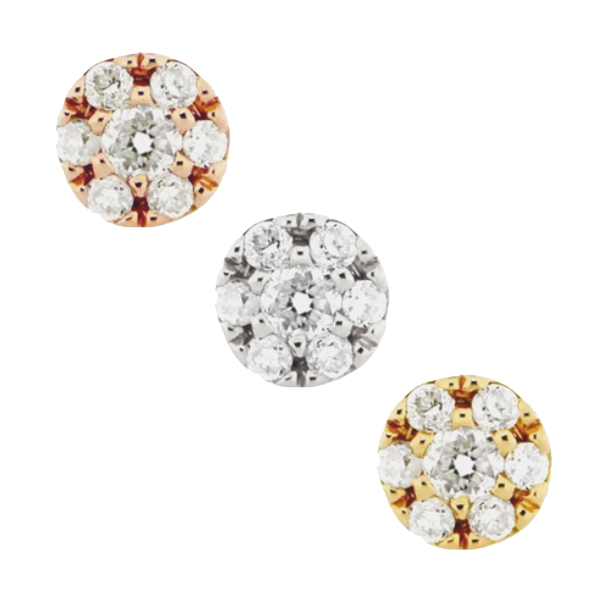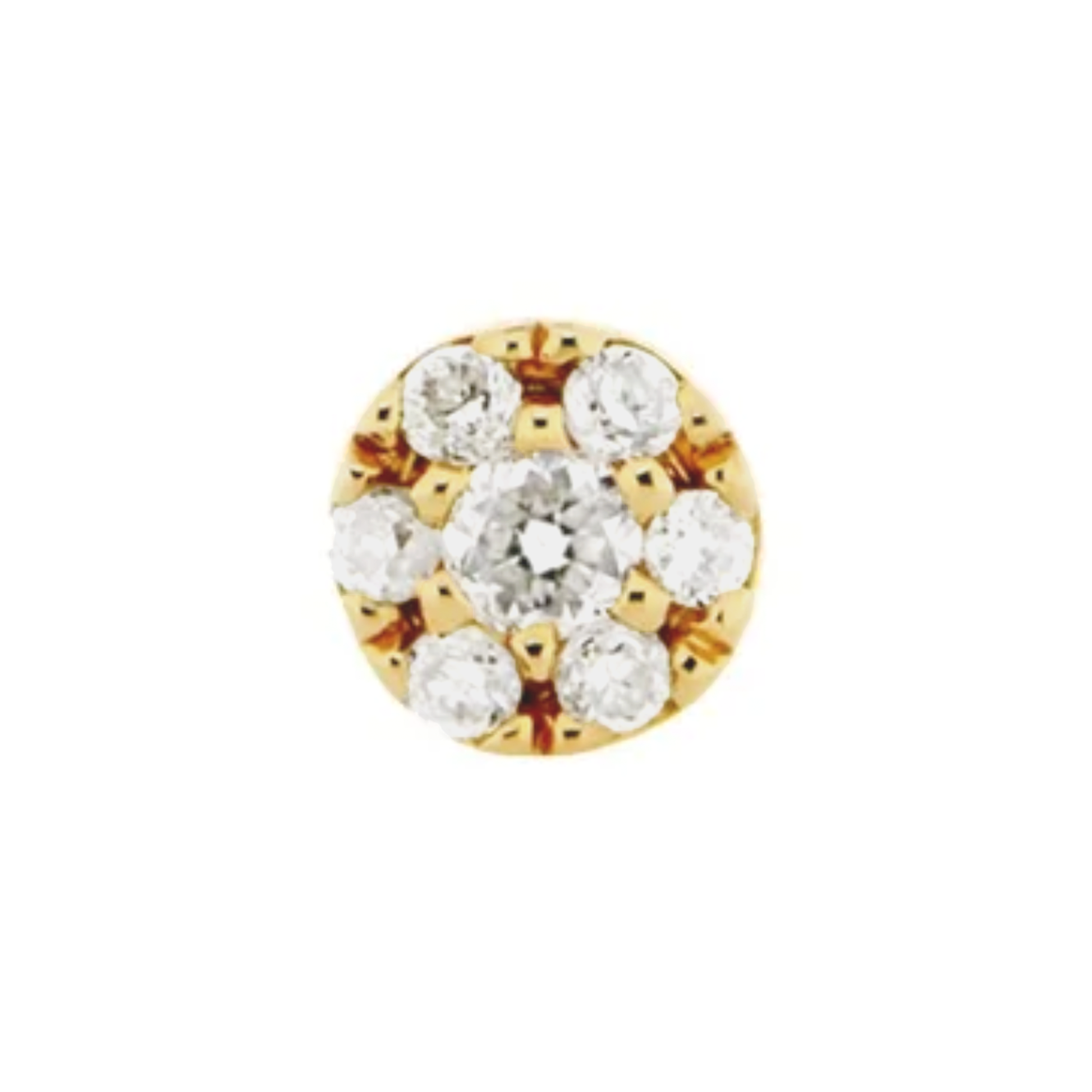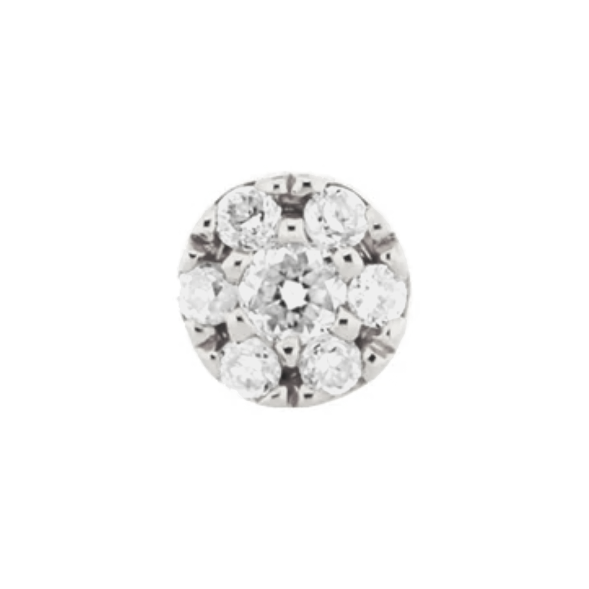 The Hex Mini is a delicate 2.5mm disc covered in pavé diamonds offering the high shine of a simple diamond stud but with a lower profile. Perfect across the ear in all piercings, and in nostril and lip piercings!