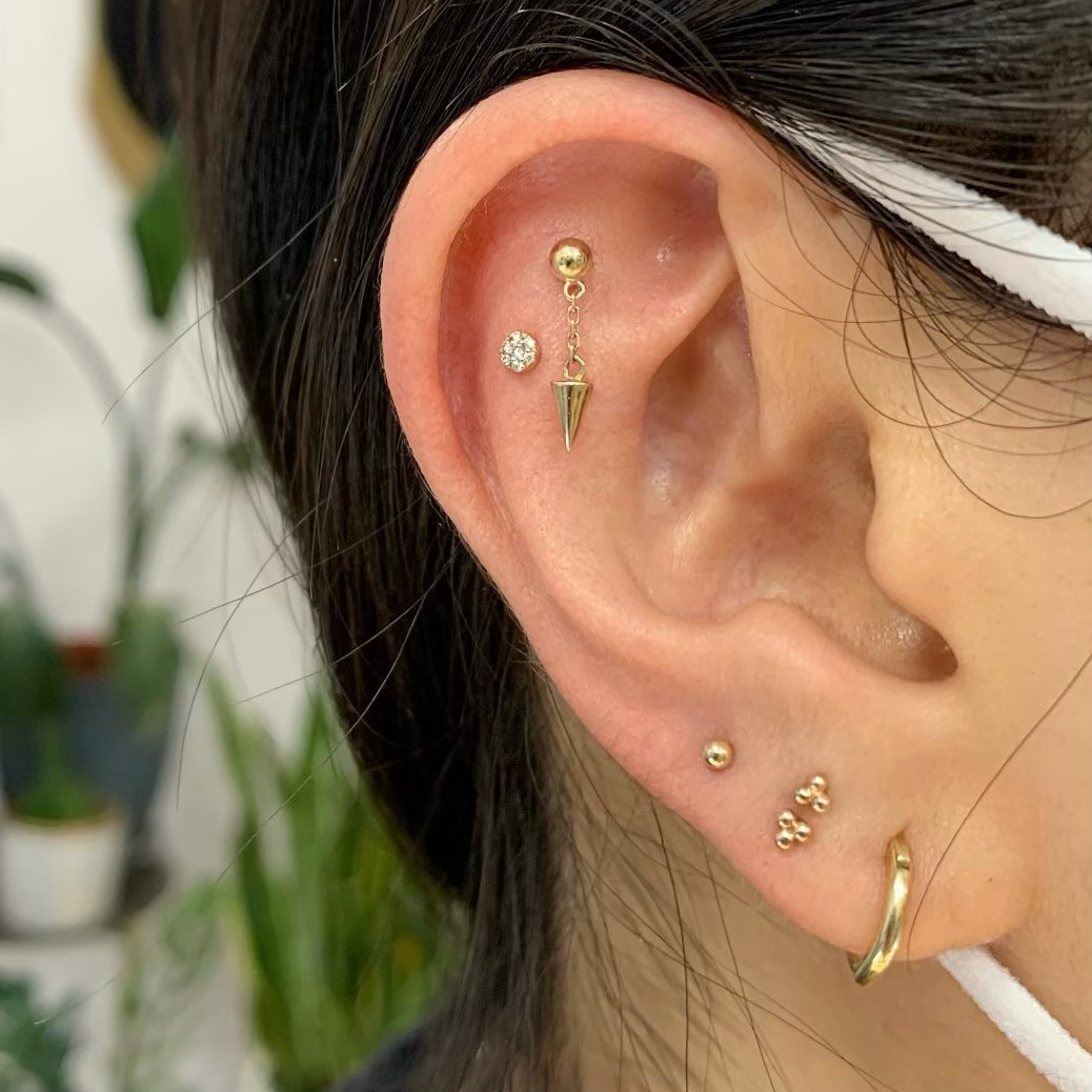 Hypoallergenic, nickel-safe 14k yellow, rose or white gold, made for wear in piercings.