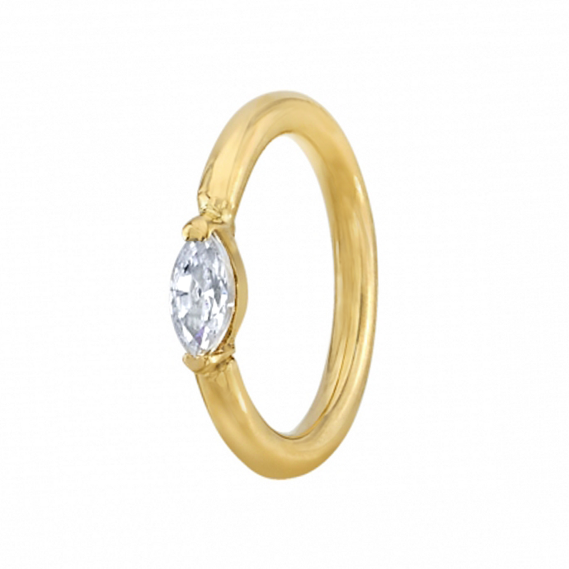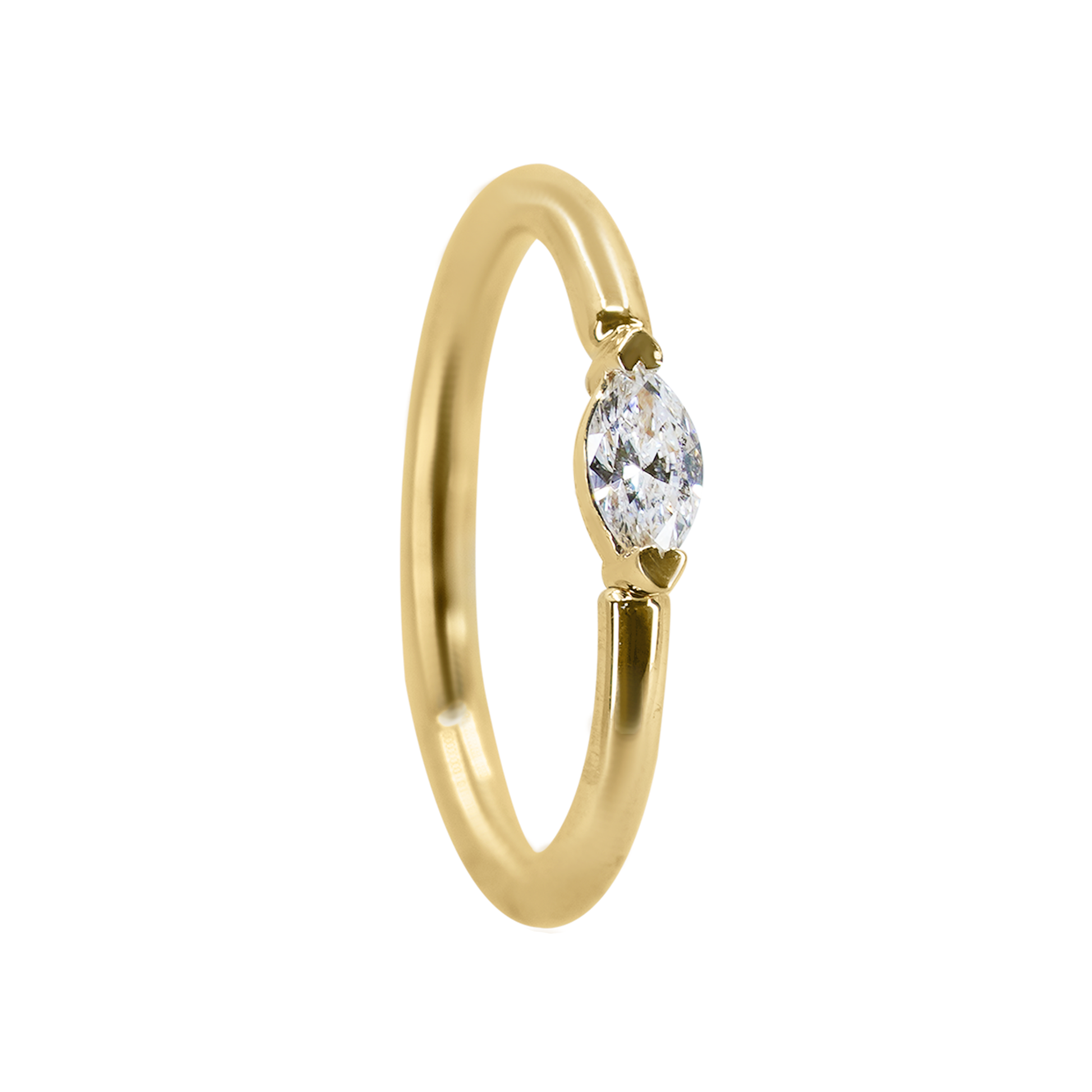 This seam ring features a delicate 3mm x 1.5mm marquise gemstone enclosed in small V-prongs - Add it to areas where tiny rings can make the most impact such as a forward helix, rook, or tragus!