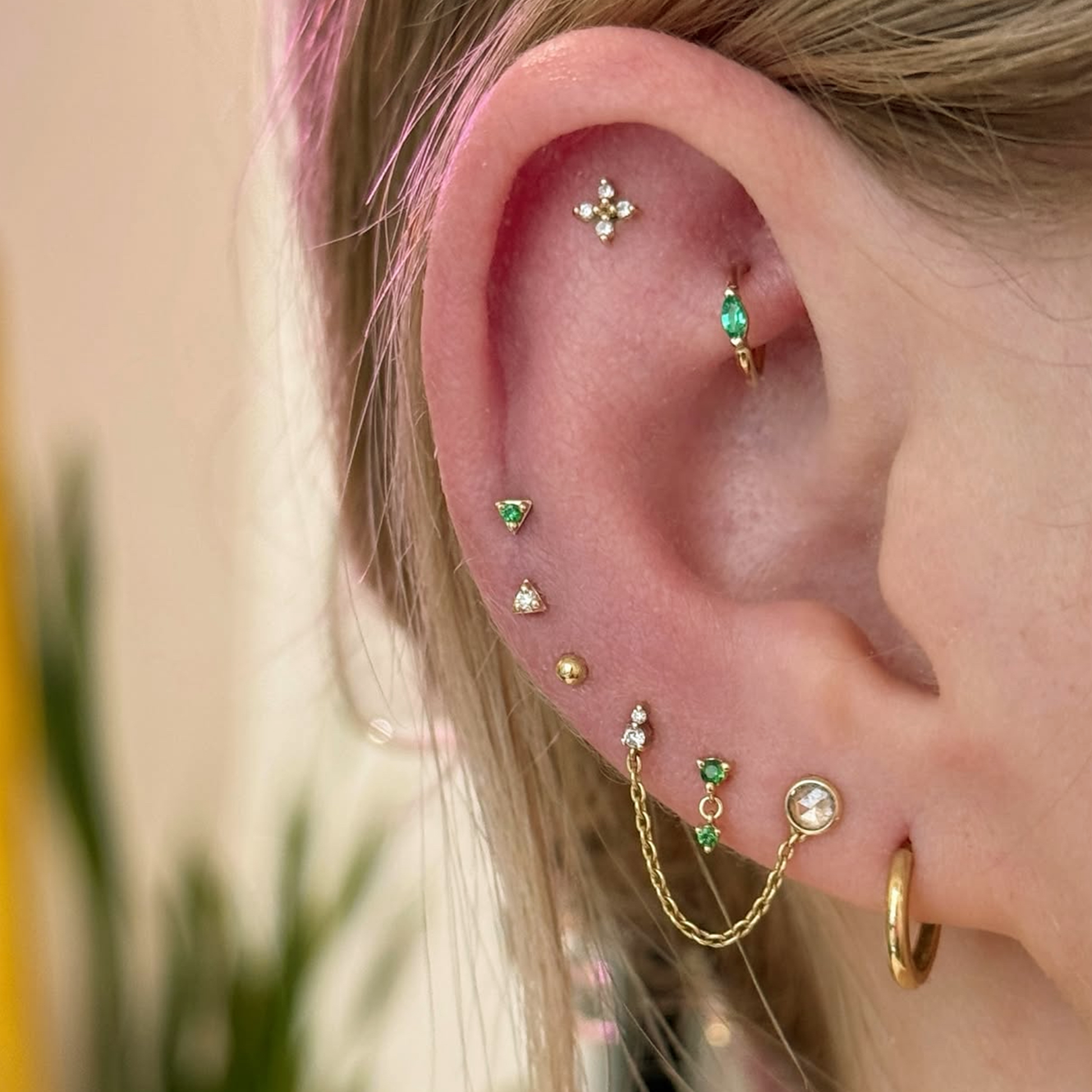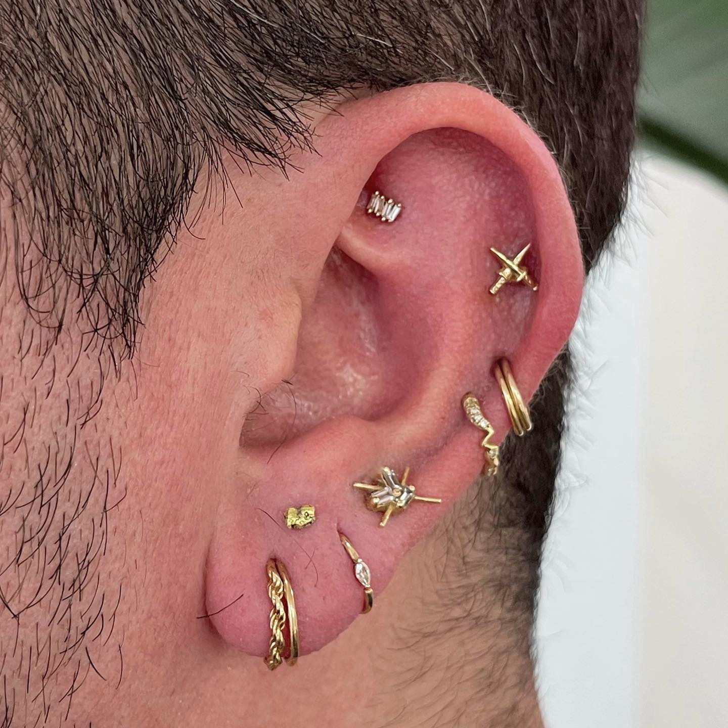 Hypoallergenic, nickel-safe 14k yellow gold, made for wear in piercings.
