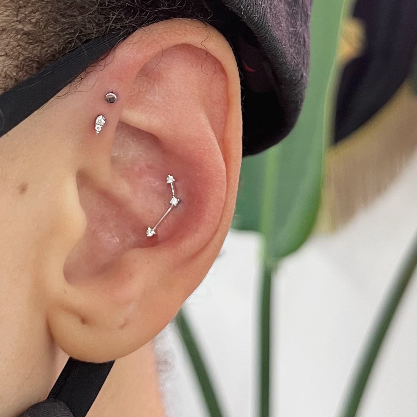 The mini Elixir is the most versatile delicate diamond stud you'll own. Two diamonds are stacked in a teardrop setting, making it a wonderful fit for tragus, forward helix, and even nostril piercings.