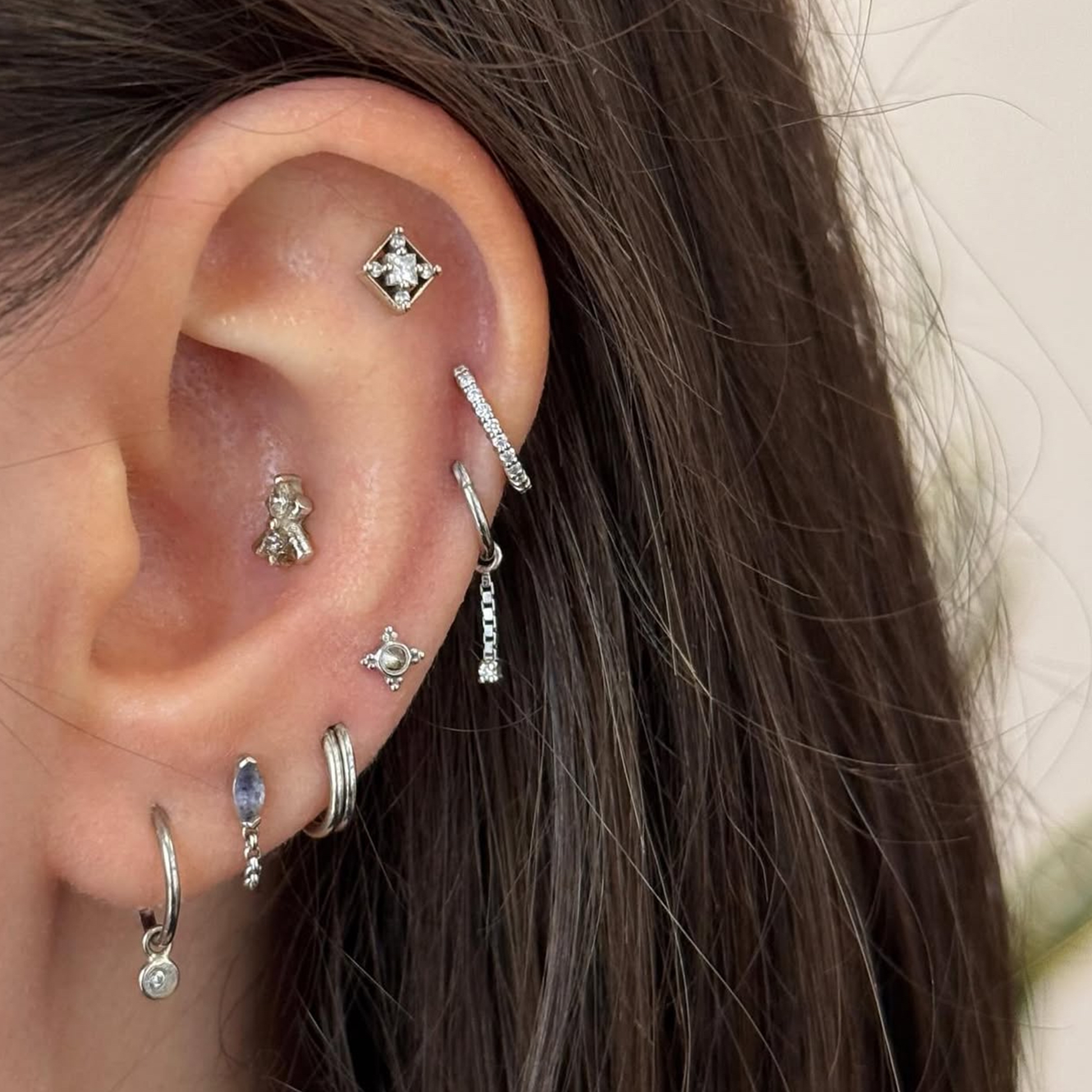 The Mini Kandy threadless end comes in a few different stunning 2mm gem options are surrounded by four tri-bead accents on each side.