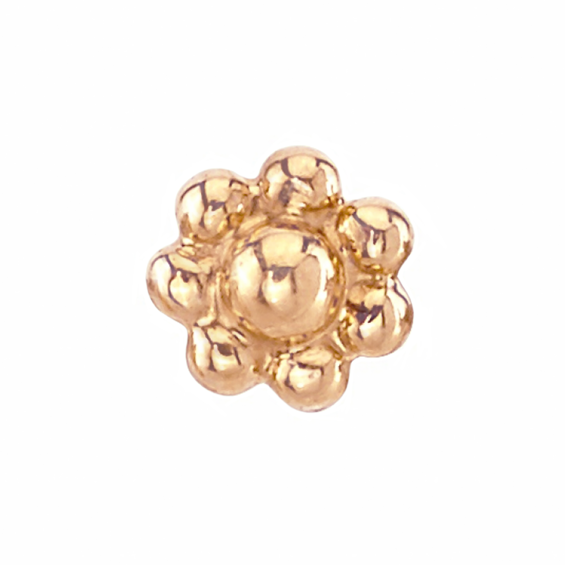 New in from BVLA, this 4mm beaded gold flower threadless end is a fun no-stone option to add to your collection.