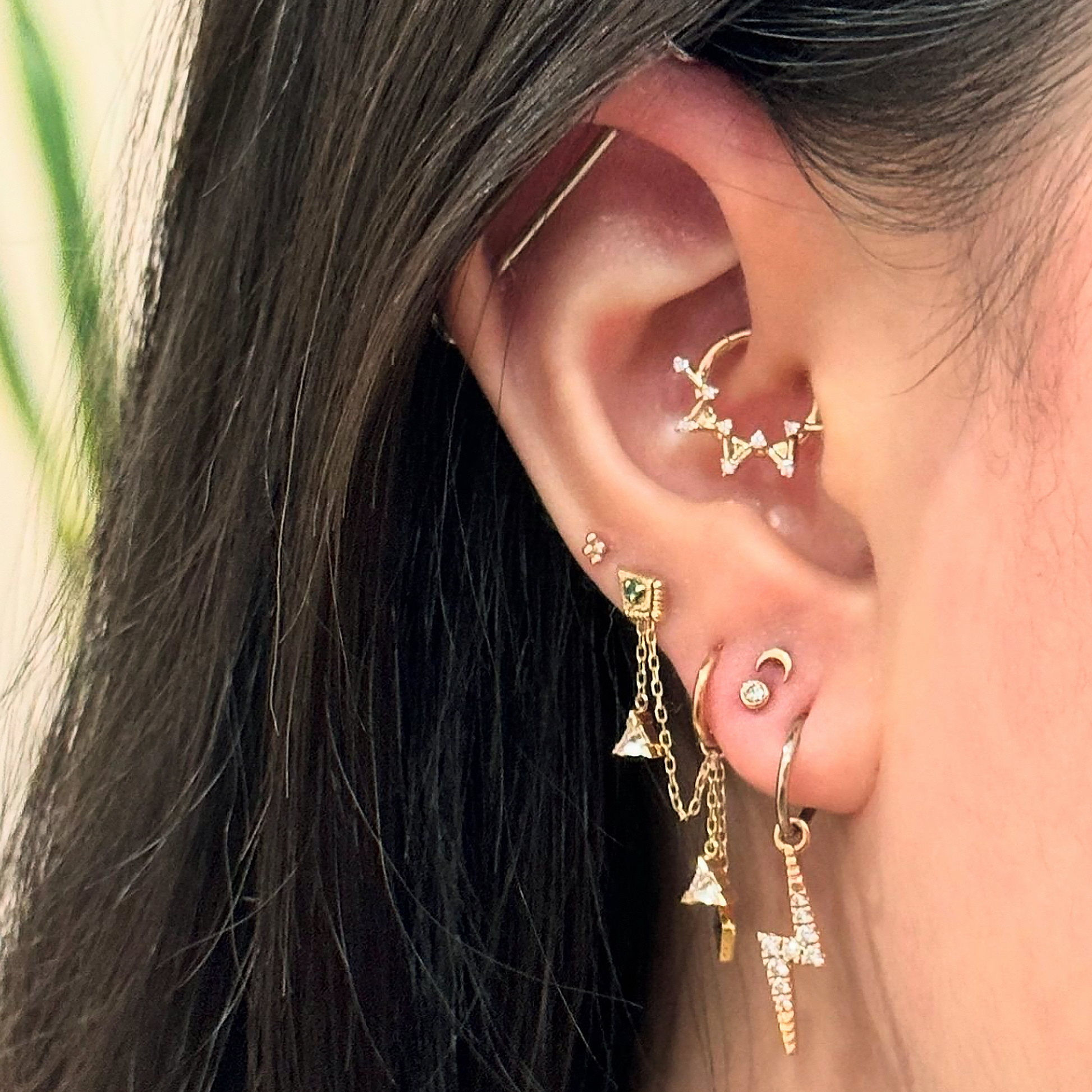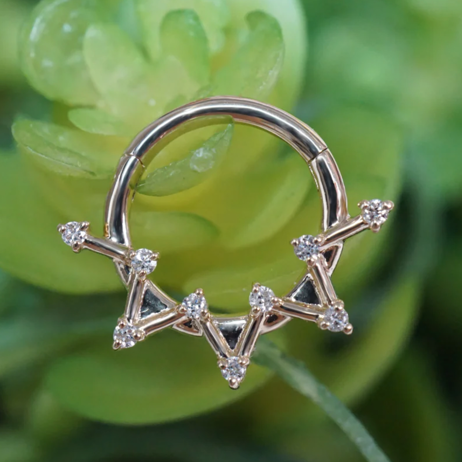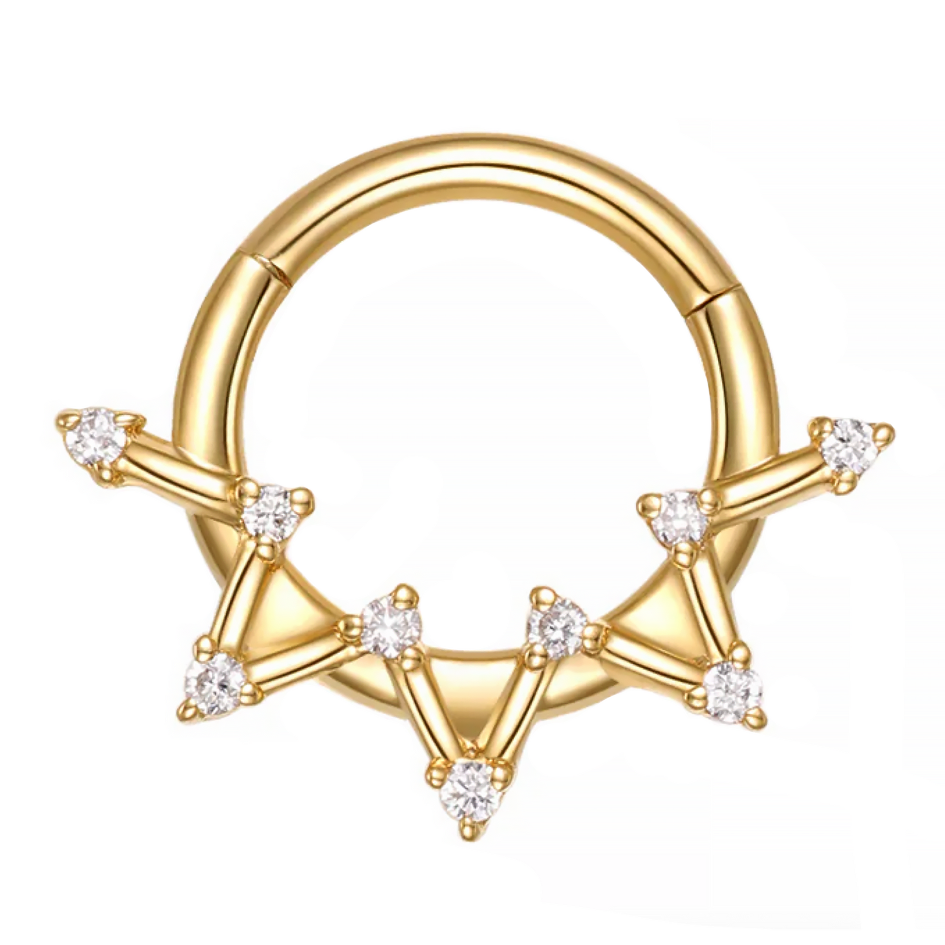 New from Modern Mood! The Astera hinge ring has a white diamond on each of its points to give your septum or daith a bit of extra shine.