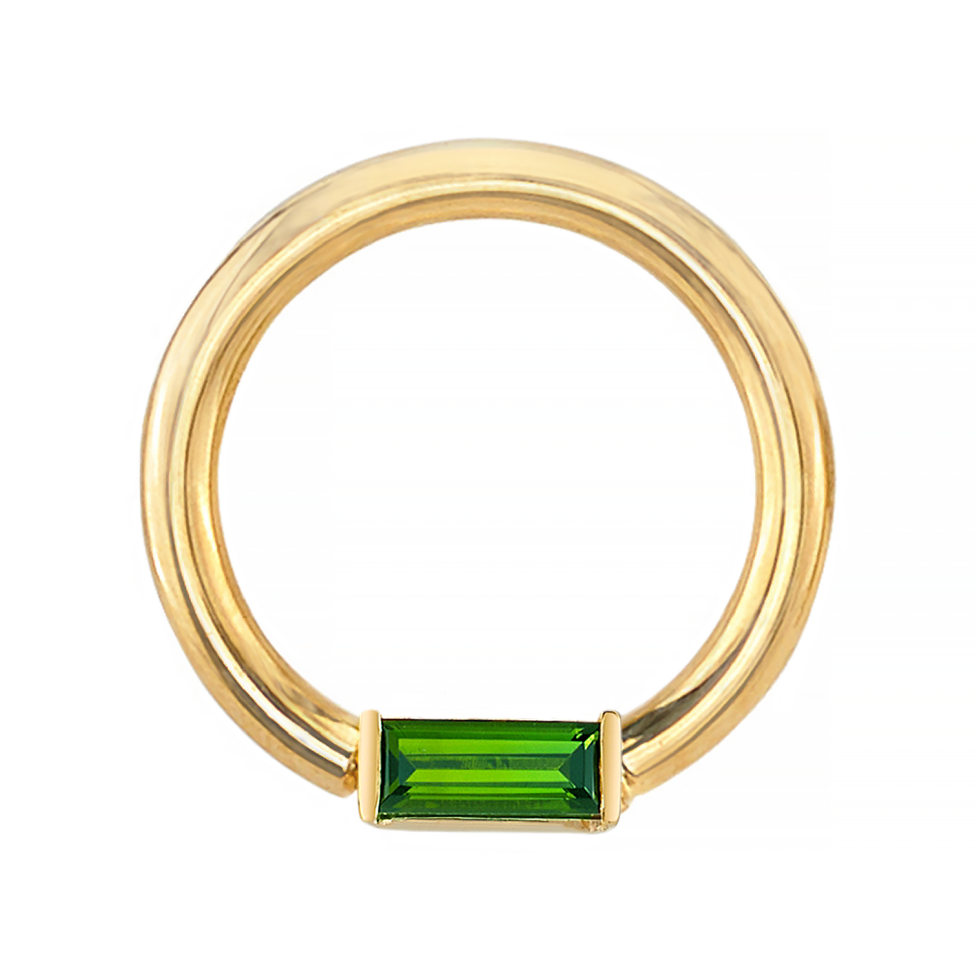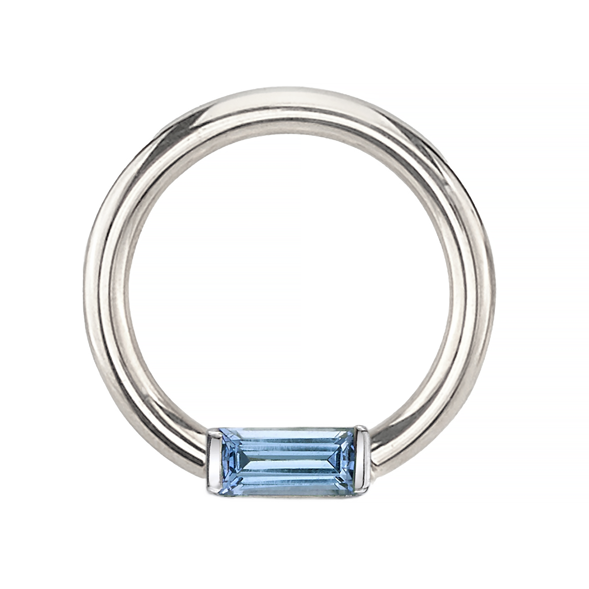 The Baguette Bar seam ring from BVLA has one central baguette gemstone on an otherwise classic seam ring.