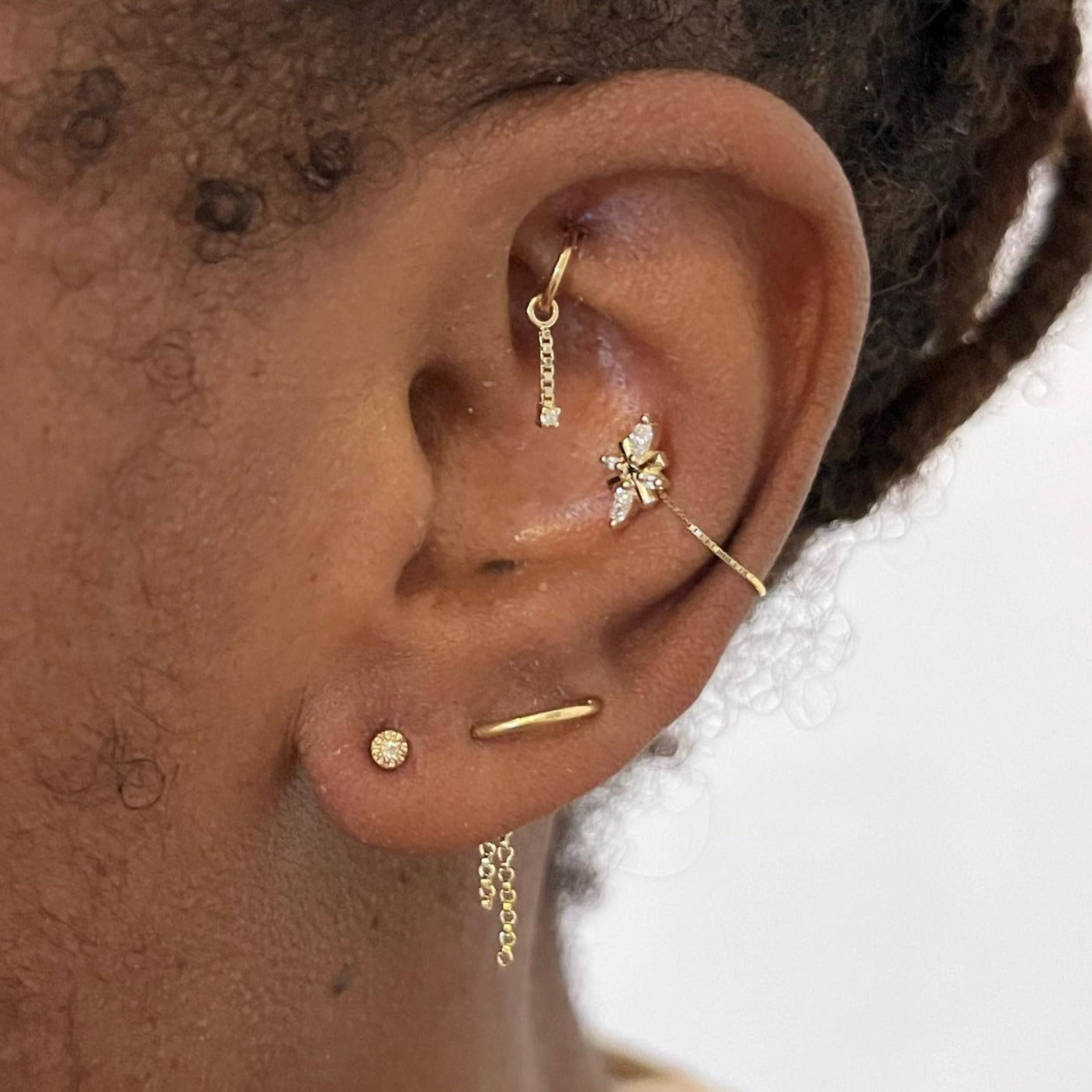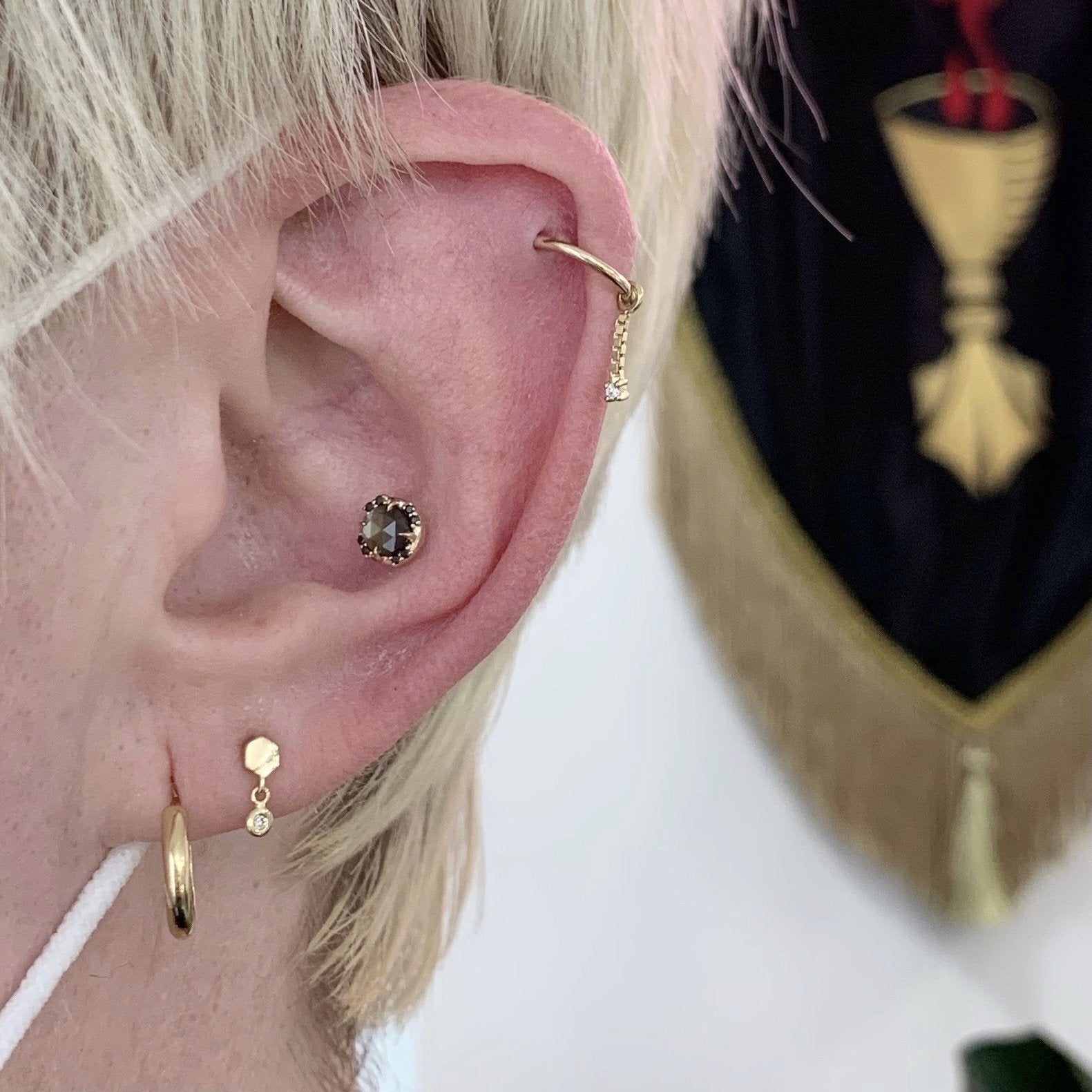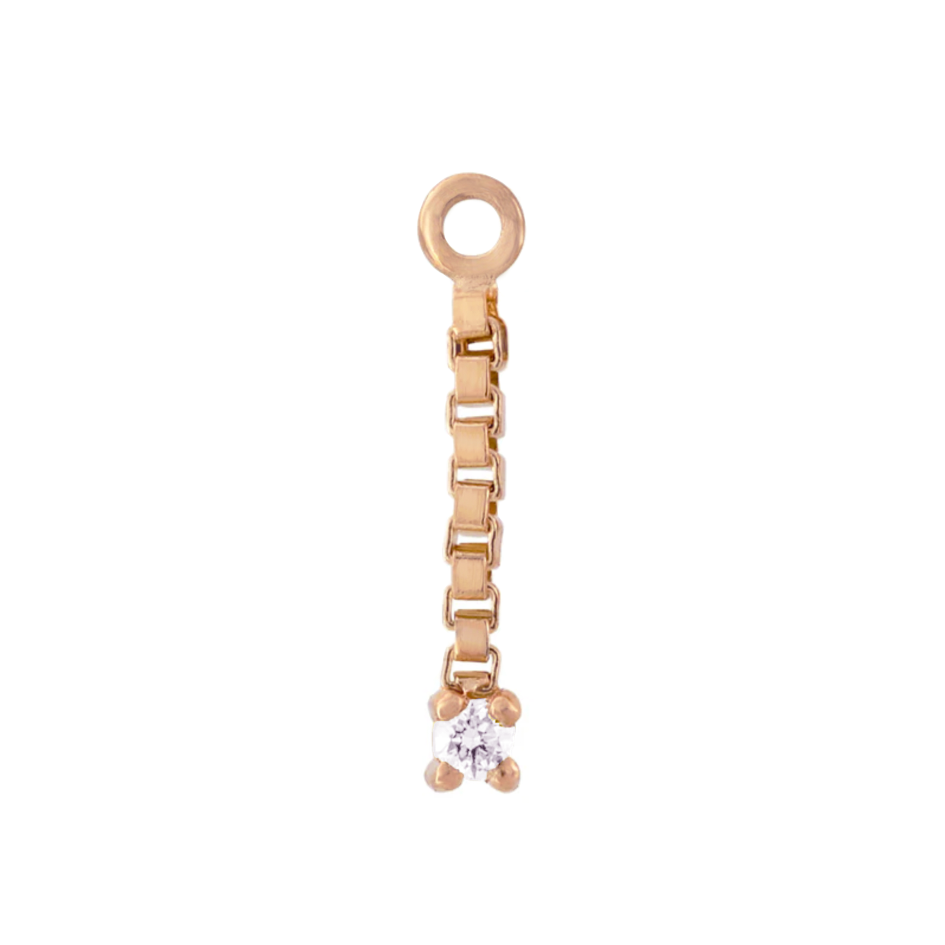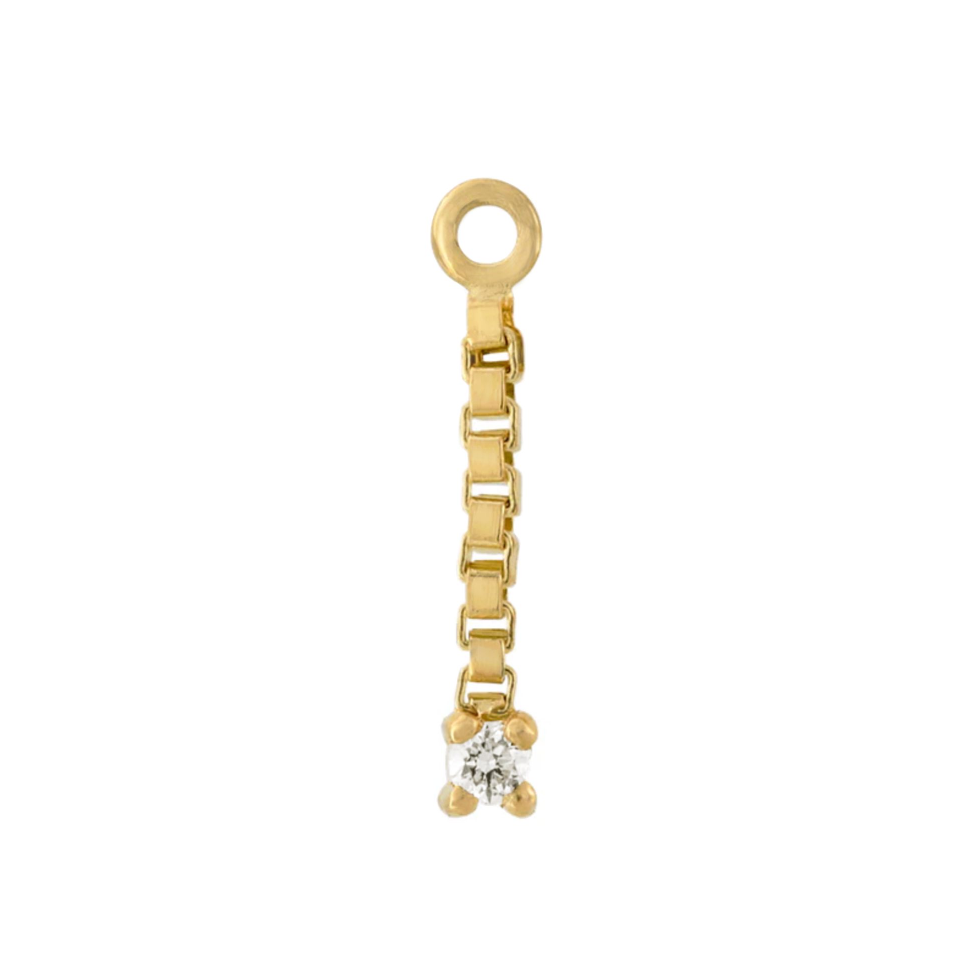 From Pupil Hall, the Bam Bam charm is the perfect little chain dangle to add some movement and sparkle to your ear.
