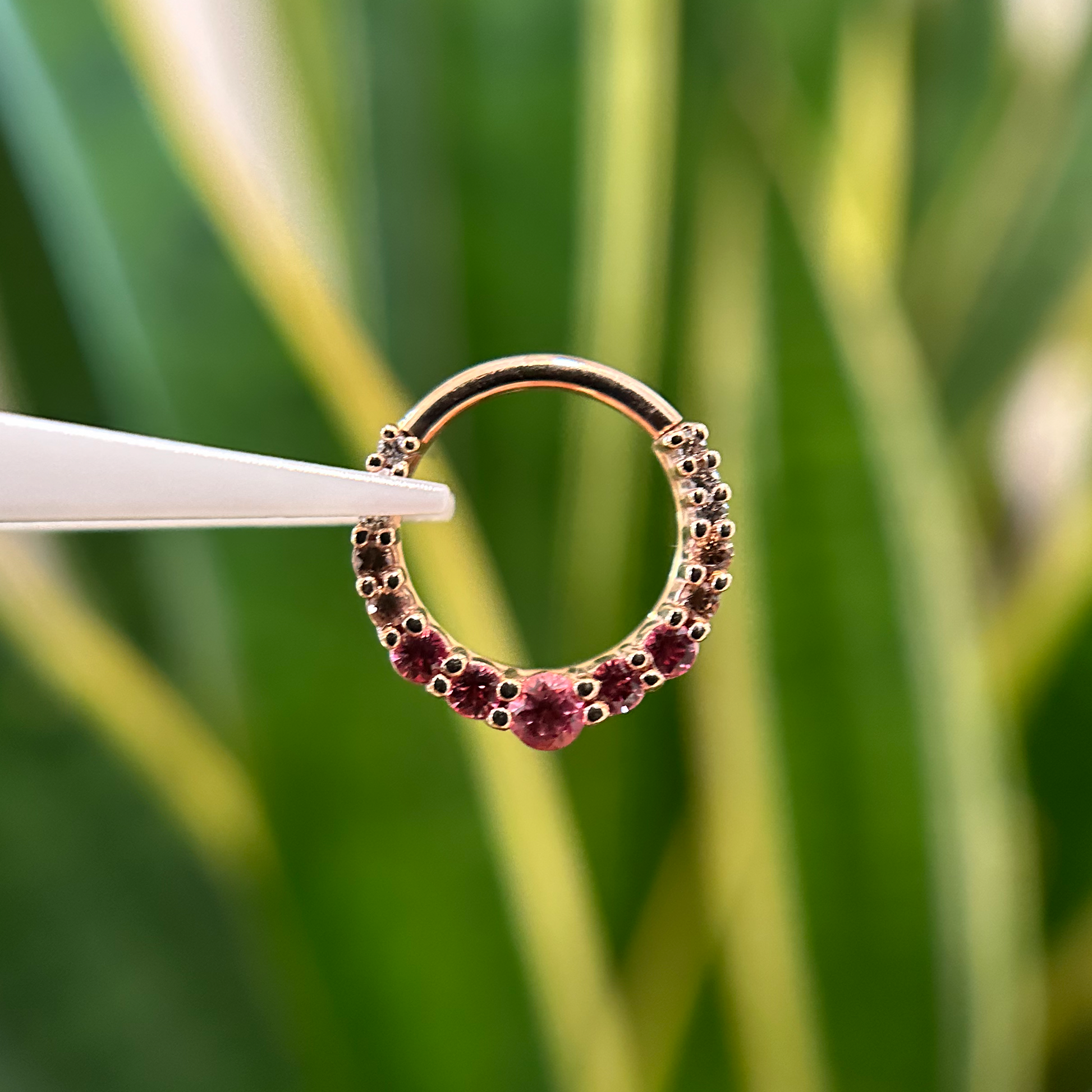 Hypoallergenic, nickel-safe 14k rose gold, made for wear in piercings.