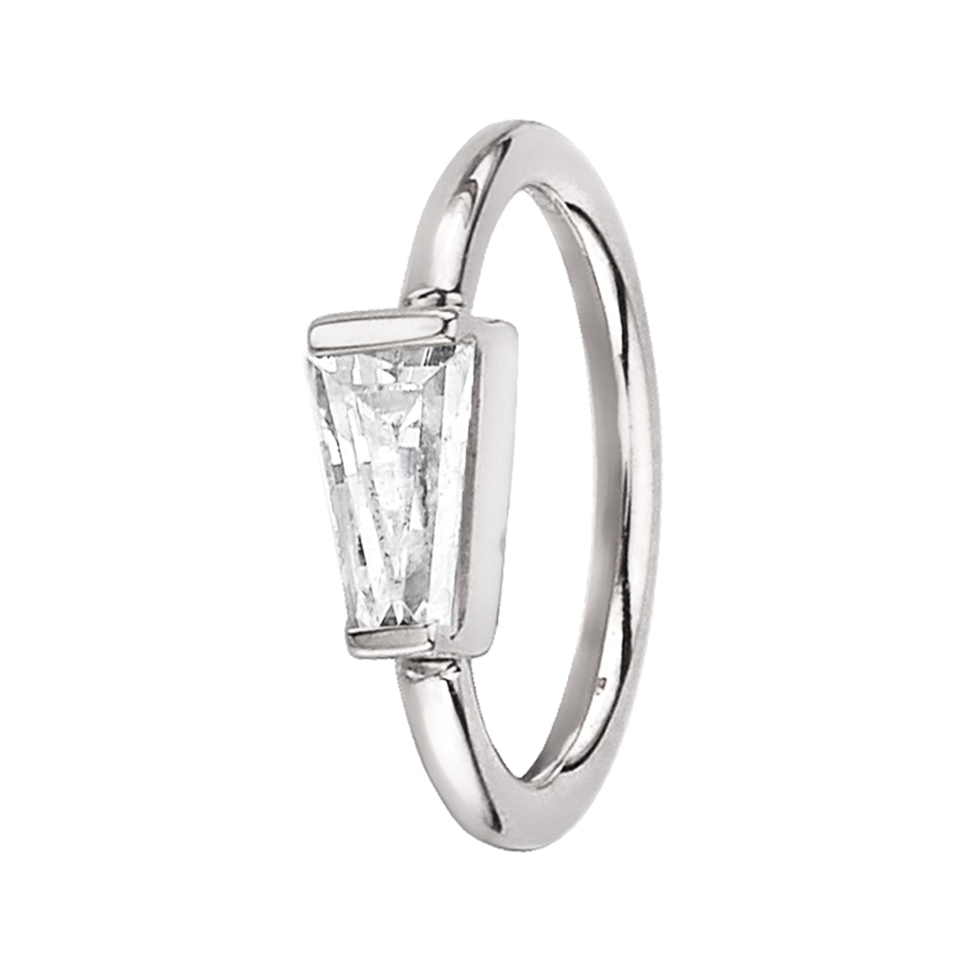 New in from BVLA! This seam ring features a sparkly tapered baguette diamond - Add it to areas where tiny rings can make the most impact such as a forward helix, rook, or tragus!