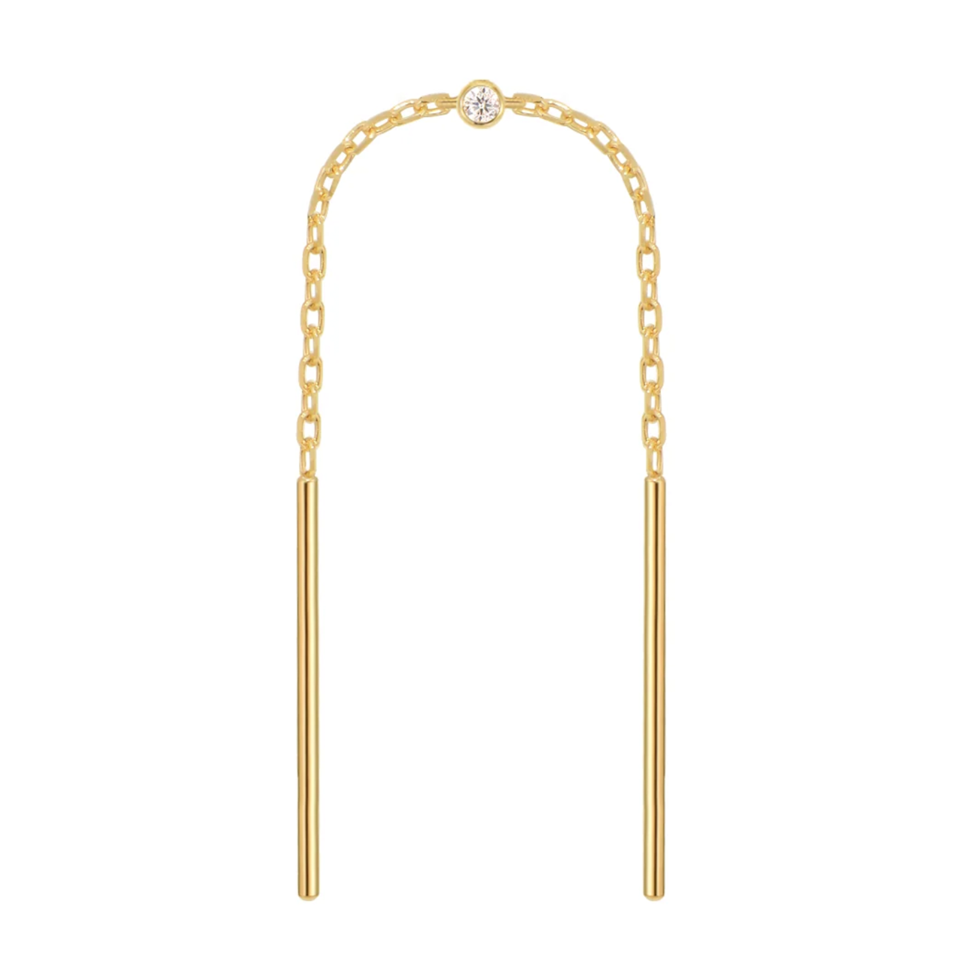 These chain threaders from Modern Mood have a bezel set white diamond at their center, making them perfect for wearing through two piercings.