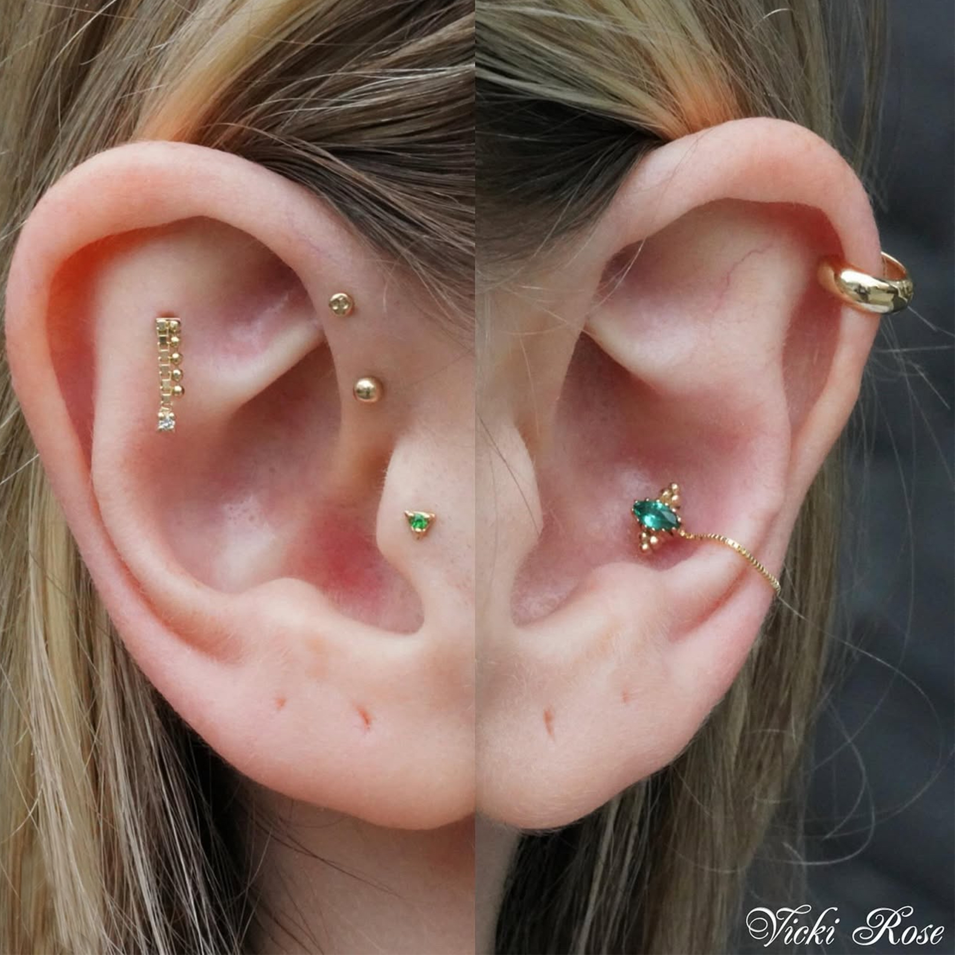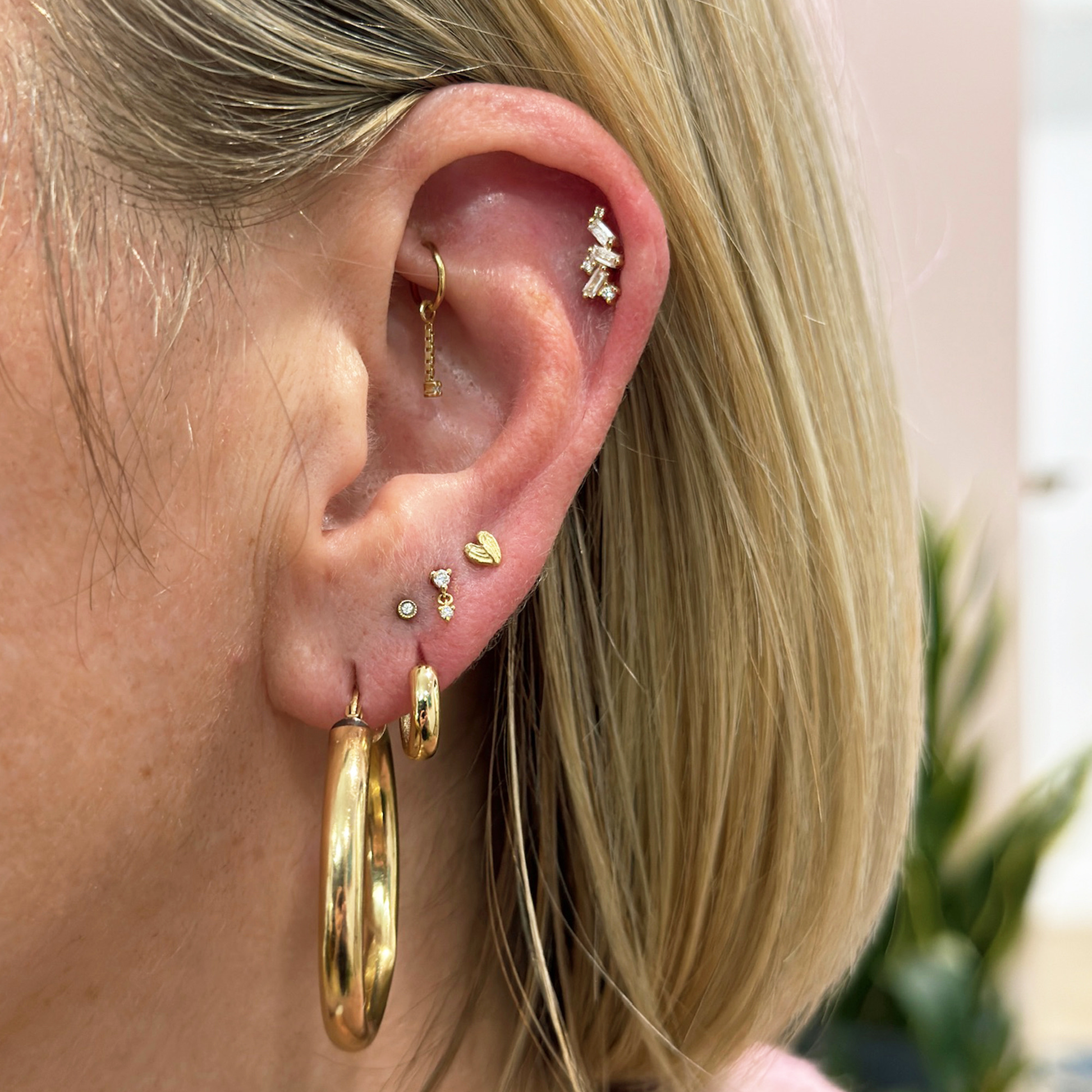 Hypoallergenic, nickel-safe 14k yellow gold, made for wear in piercings.