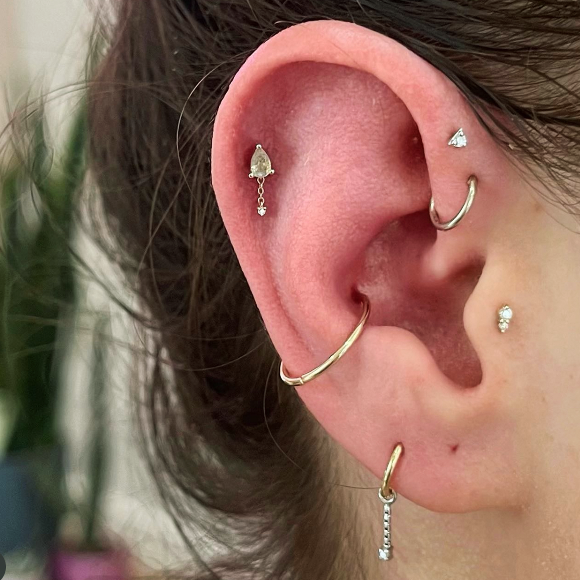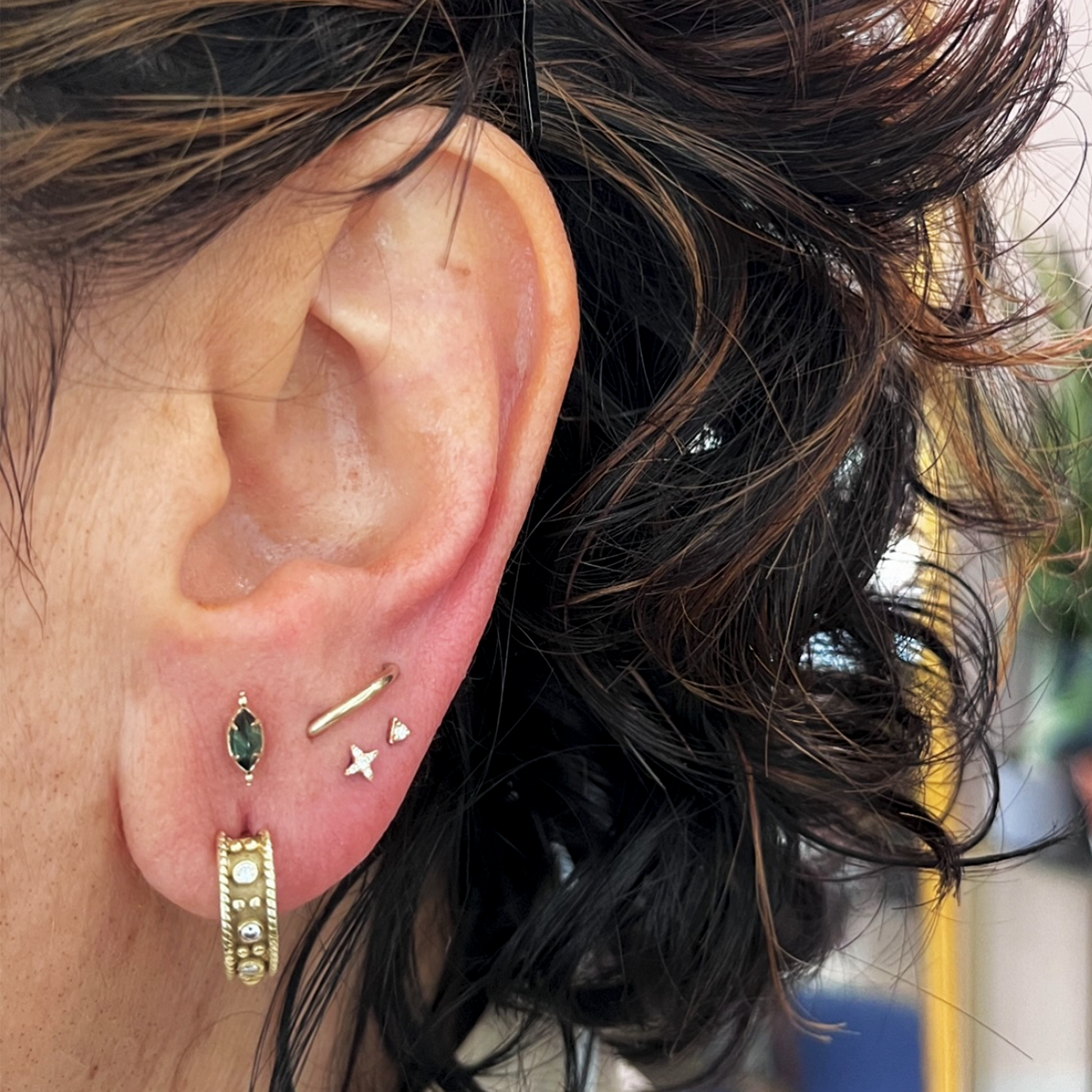 Hypoallergenic, nickel-safe 14k yellow, white or rose gold, made for wear in piercings.