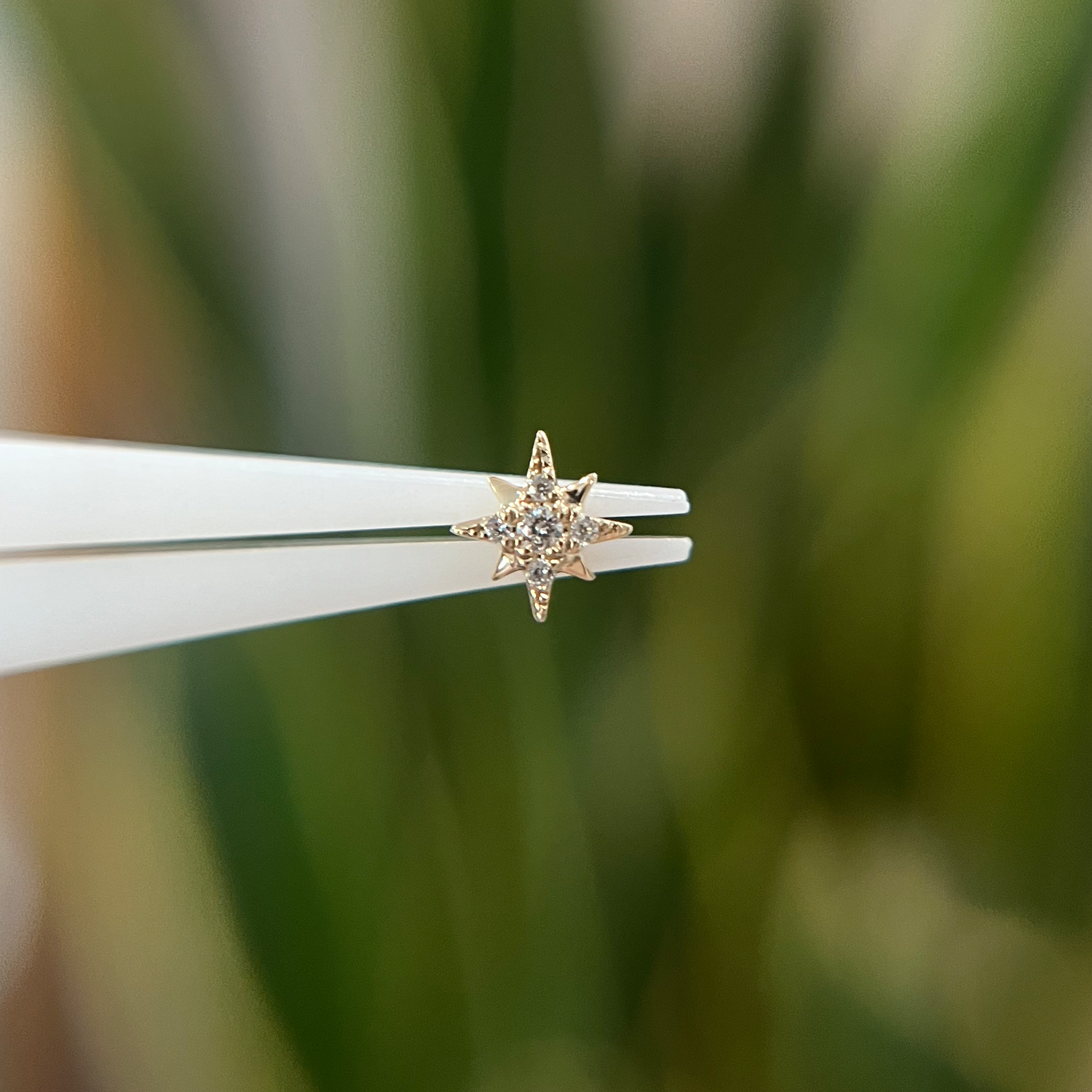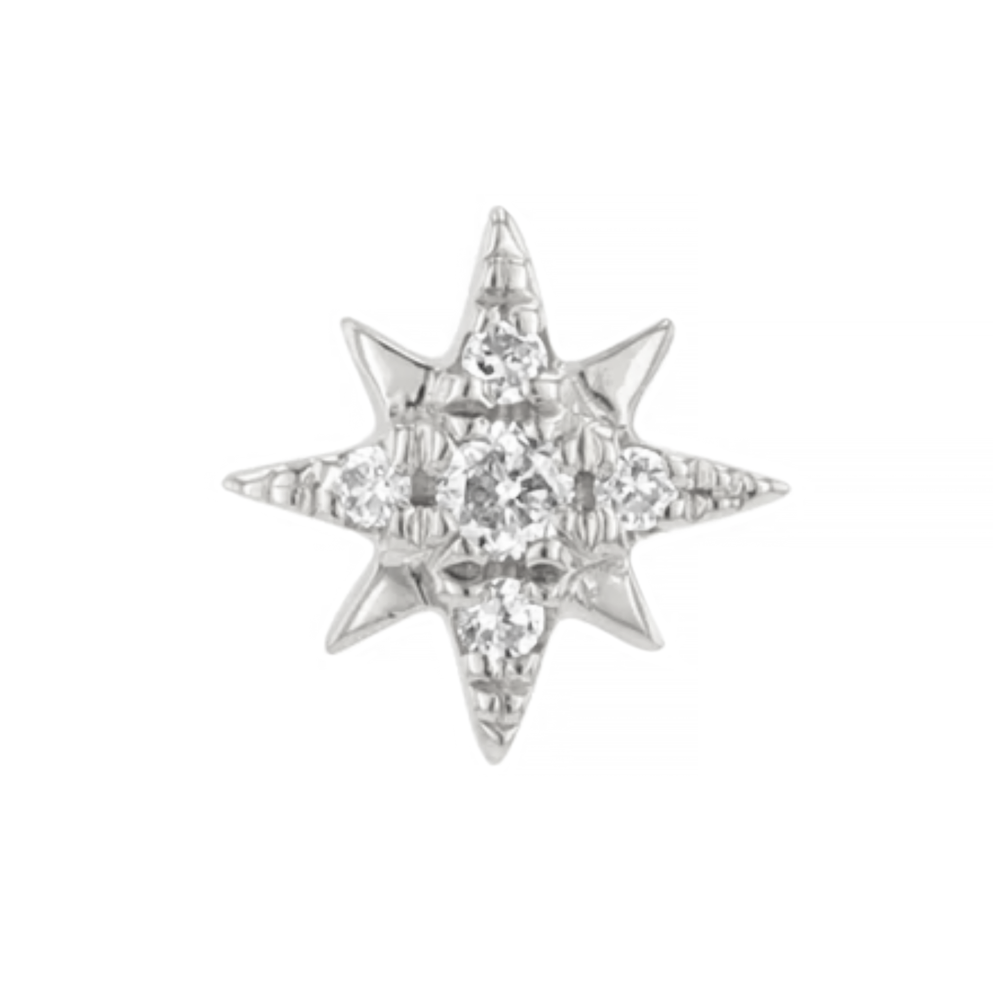 New in from Modern Mood, the Kira threadless end is covered in pavé white diamonds.