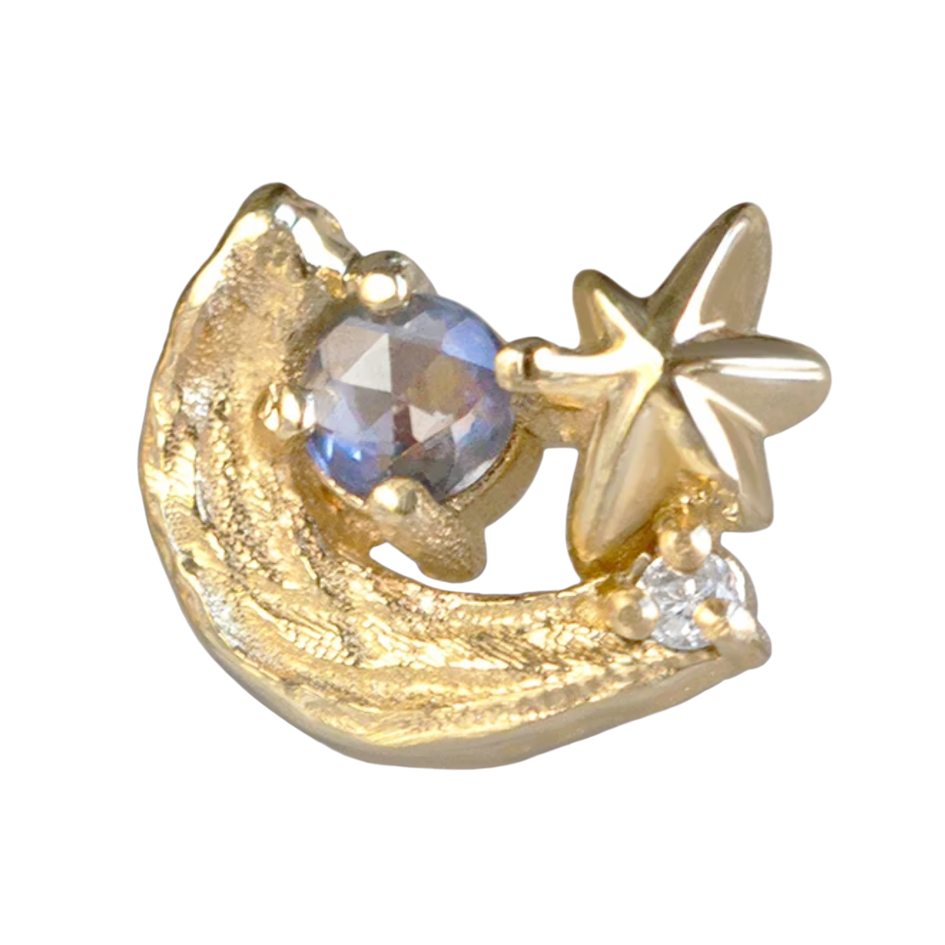 New from our exclusive body jewelry collection from Le Conte Jewelry, the Nocturnal Palette threaded end is a celestial swirled end with a rose cut blue sapphire and a white diamond accent.