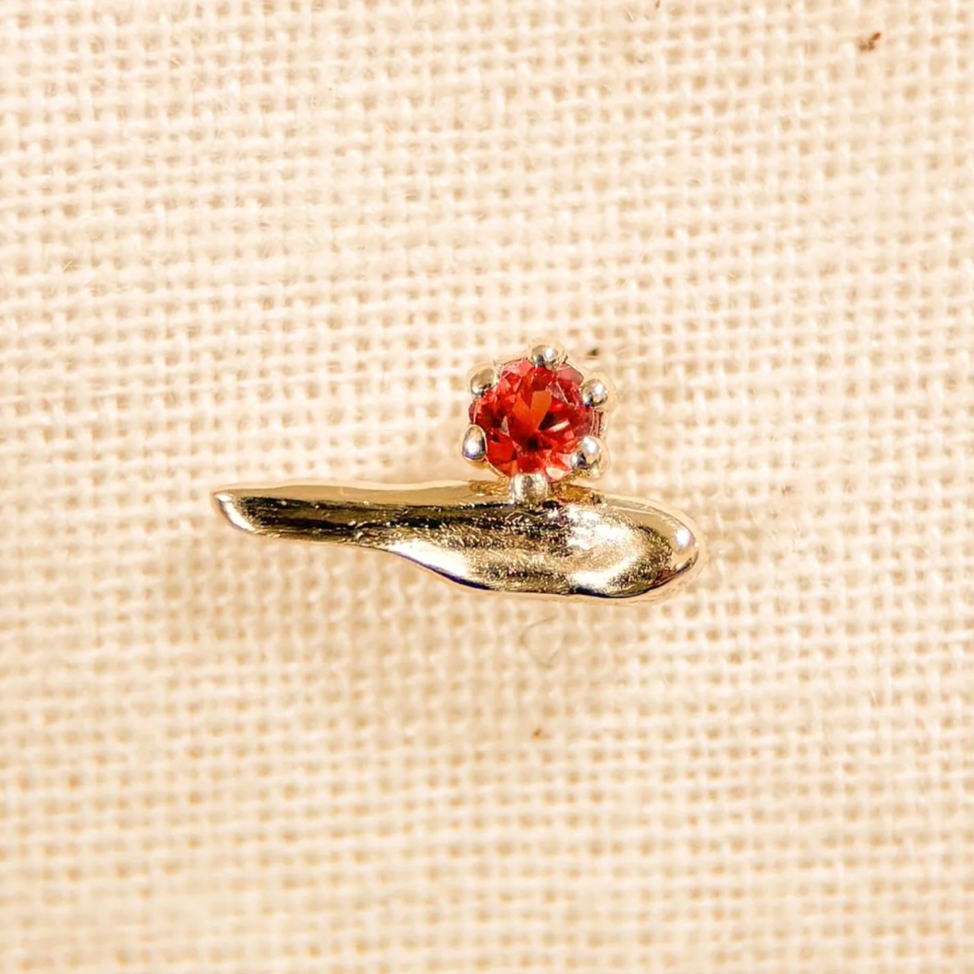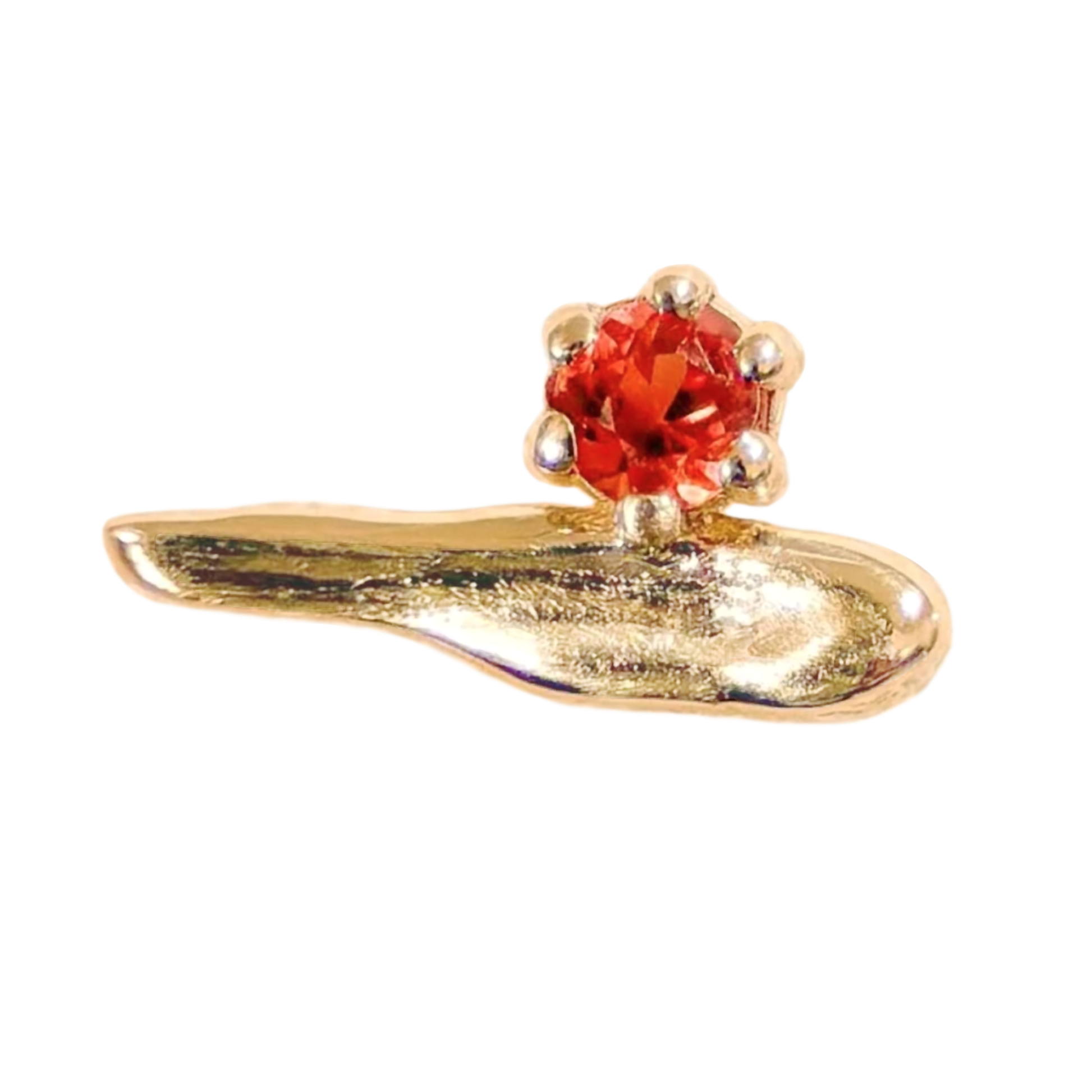 New from Le Conte! The Sunlit threadless end features a prong set orange sapphire rising over one of Le Conte's signature gold brushstrokes.