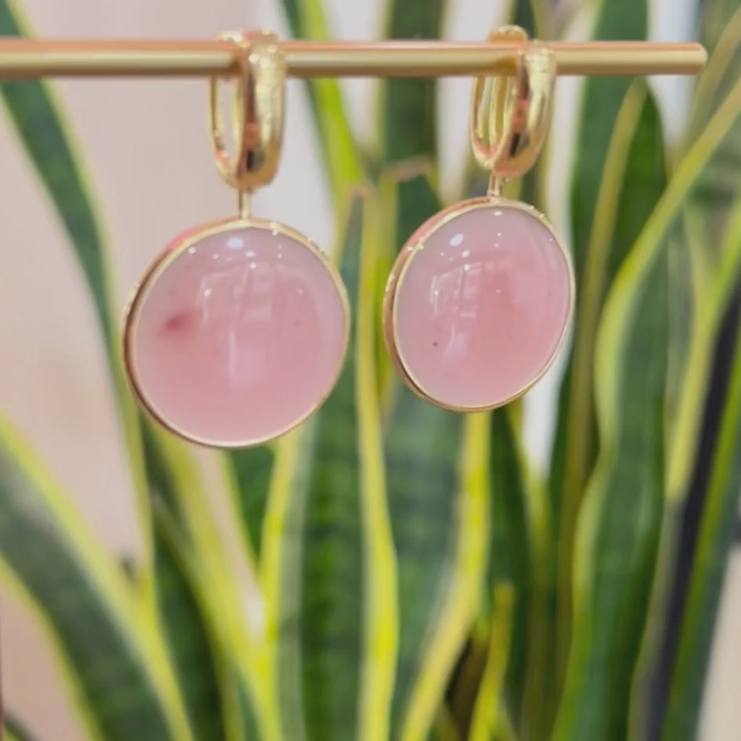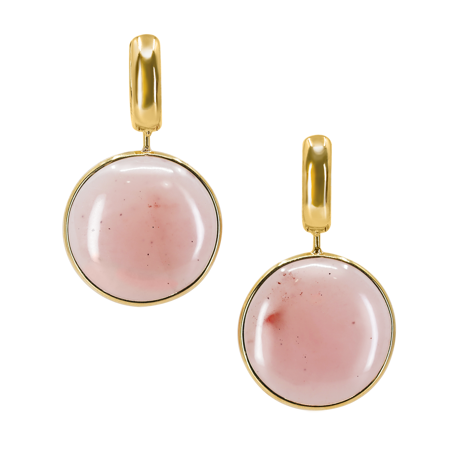 These solid gold earrings come with polished discs of stunning spotted Guava Rose Quartz that can be removed from the earring bases (see the video we've included in the product images!) and mixed and matched with different lozenges from the designer.