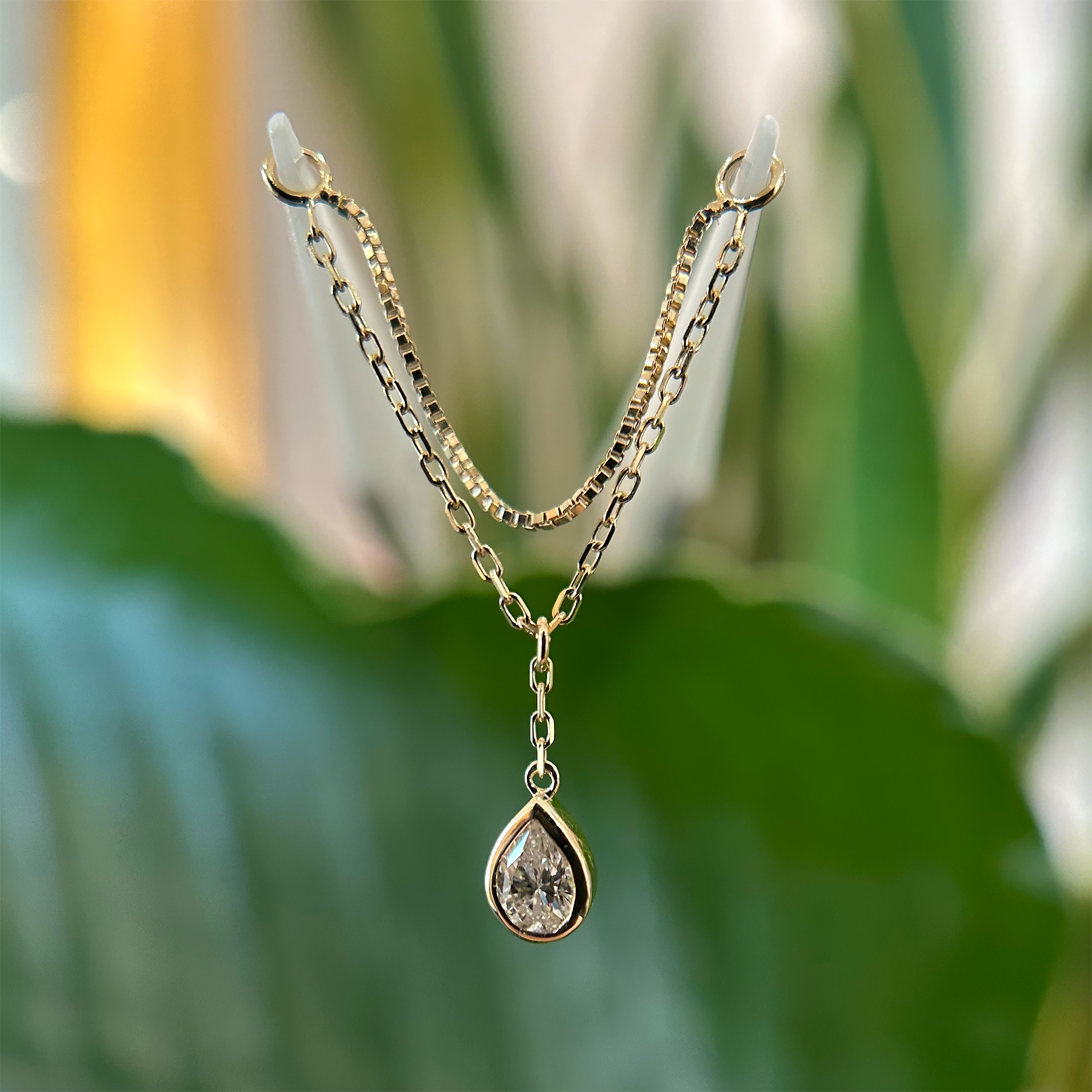 New in from Modern Mood's latest all-diamond collection, the Amihan chain features a large sparkly teardrop diamond dangling from a mix of box and cable chains.