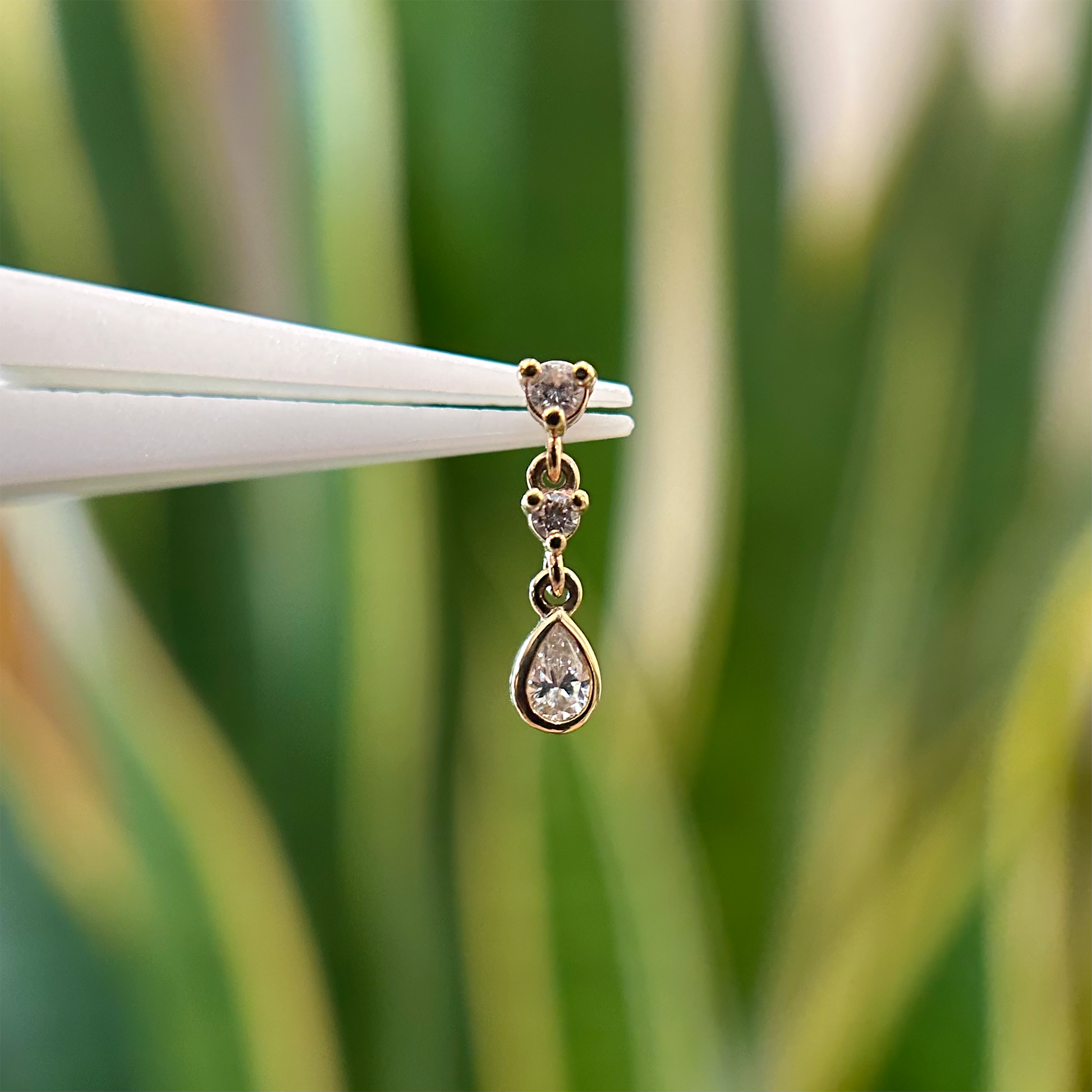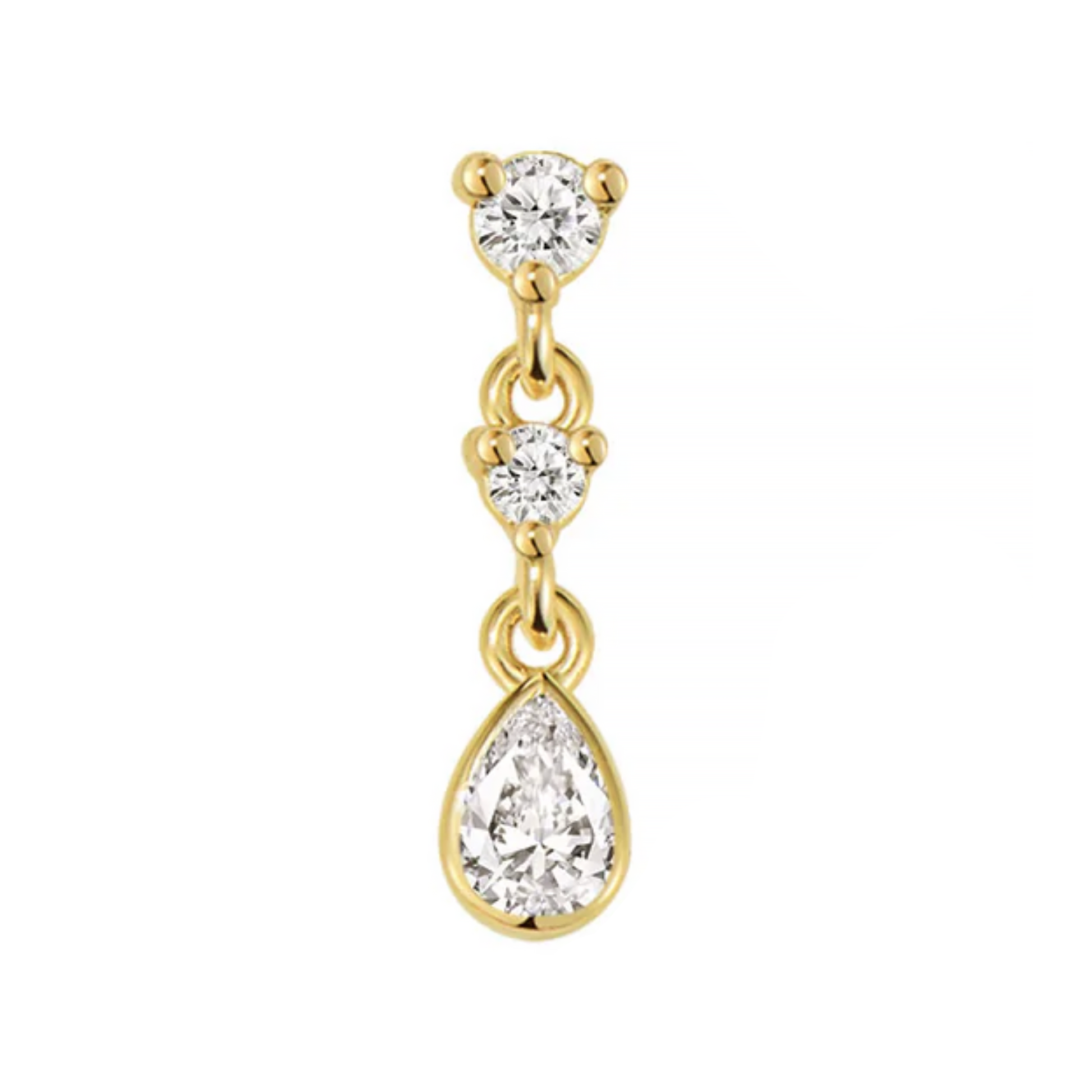 New in from Modern Mood's latest all-diamond collection, this version of their famous Cascade II threadless end has a bezel set pear diamond dangle.