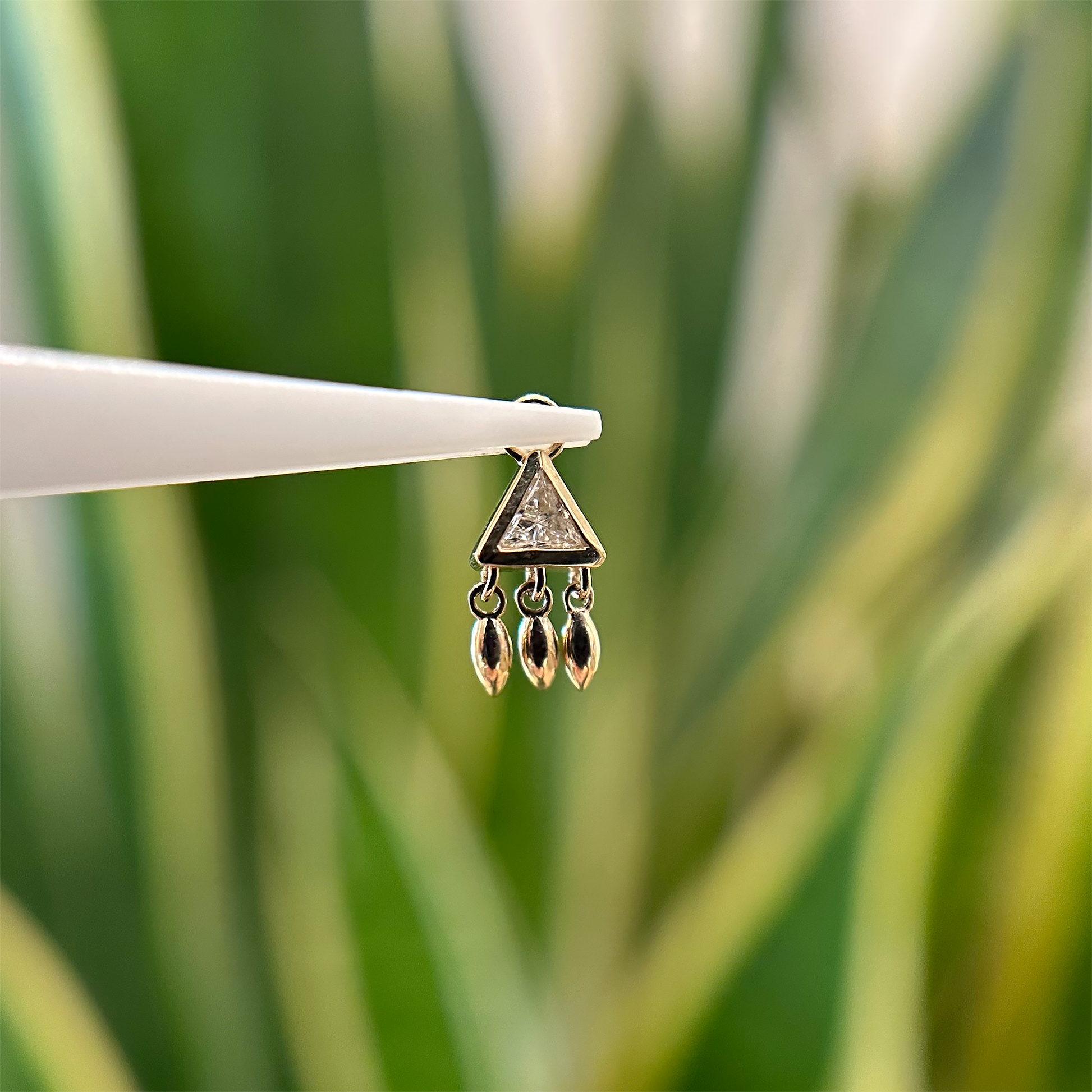 New in from Modern Mood's latest all-diamond collection, this iteration of their Tessa charm features a big trillion cut diamond.