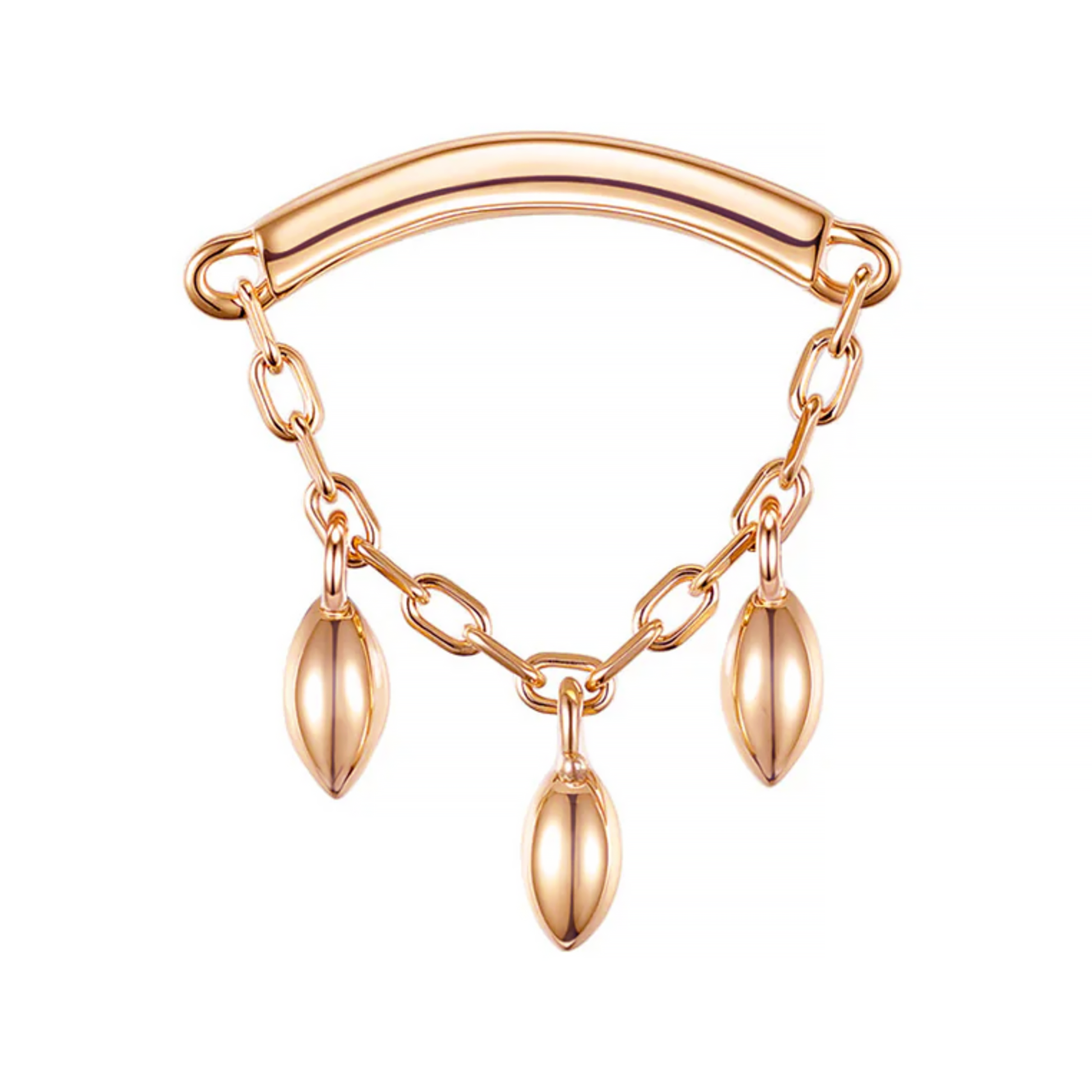 New from Modern Mood! This curved bar threadless end features a chain, dripping with marquise-shape beads.