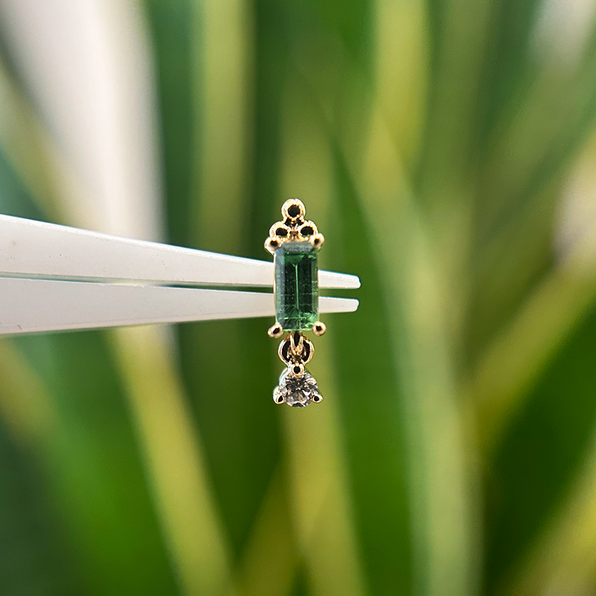 Tsavorite Bagutte & Diamond Dangle Threadles End