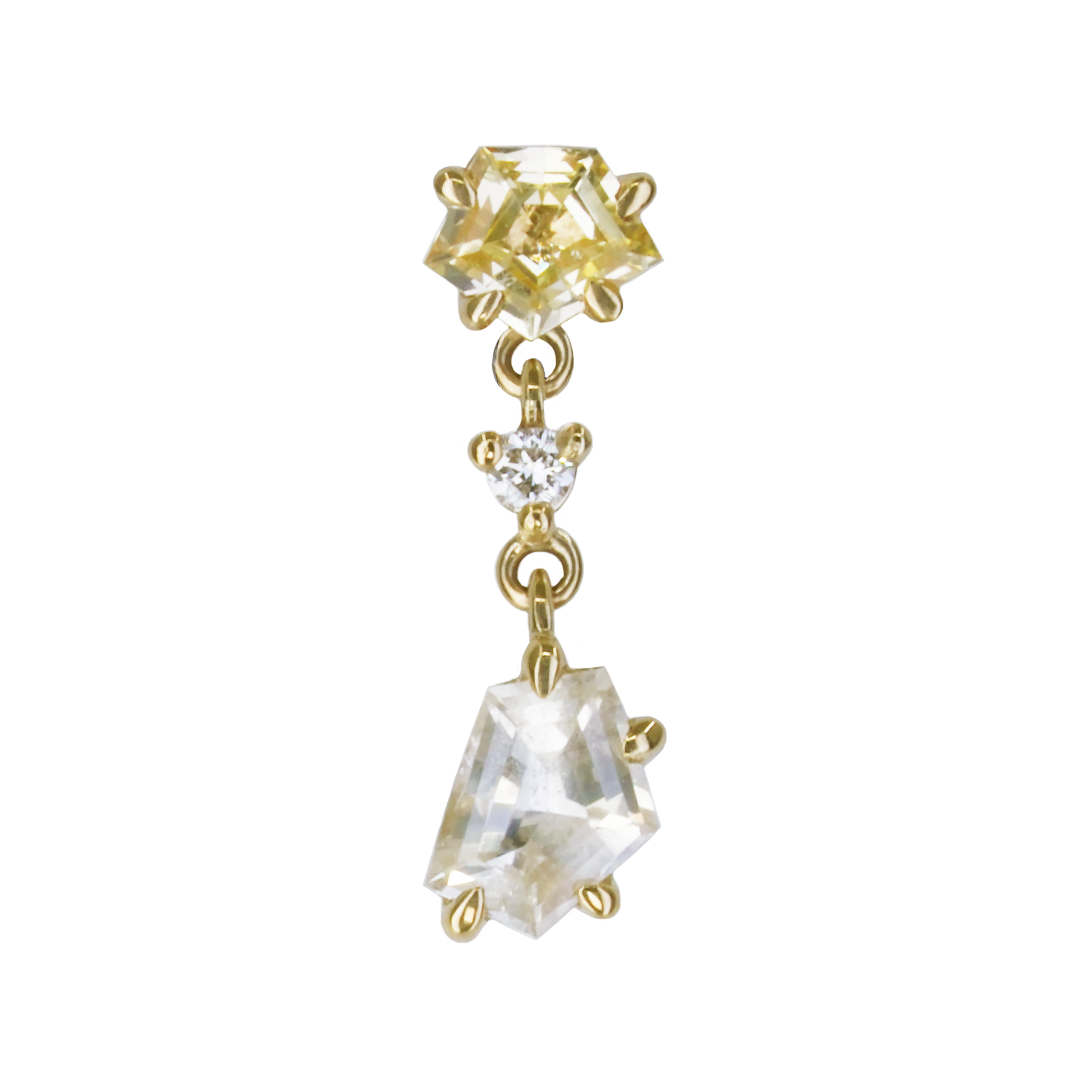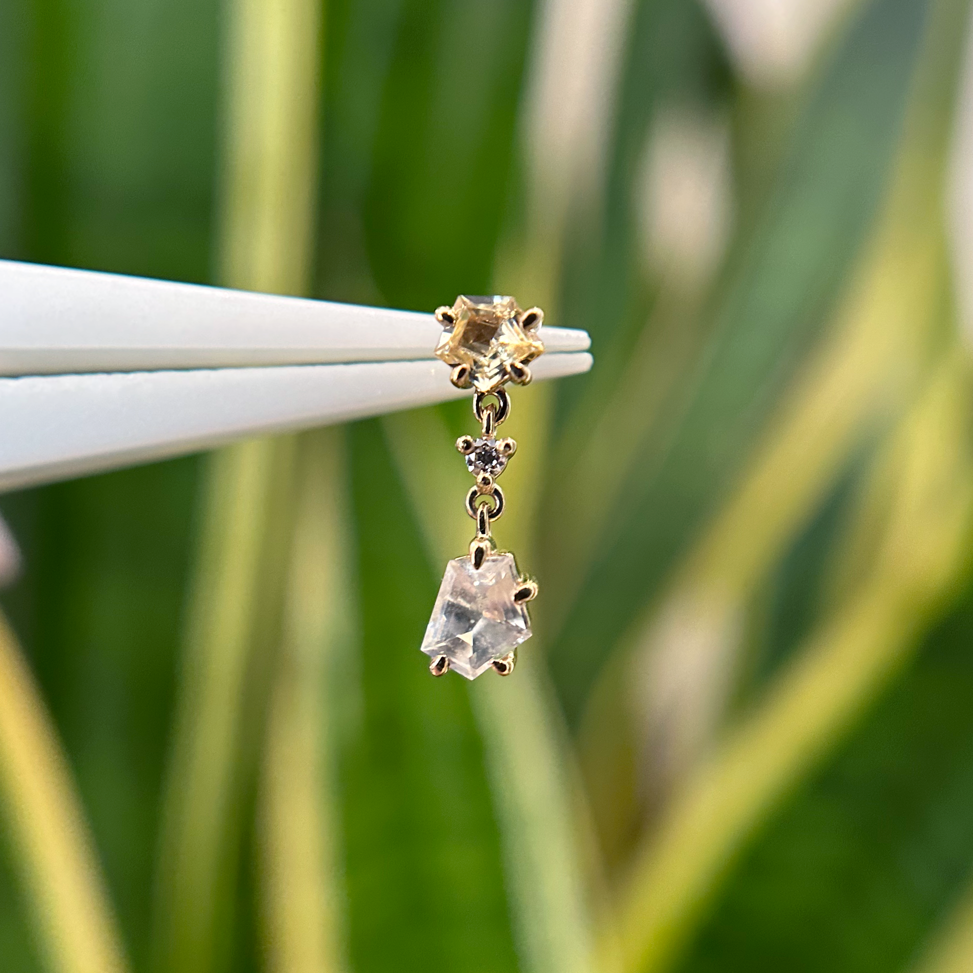 A one of a kind pastel sapphire double-drop threadless end with a diamond connector, from Modern Mood.