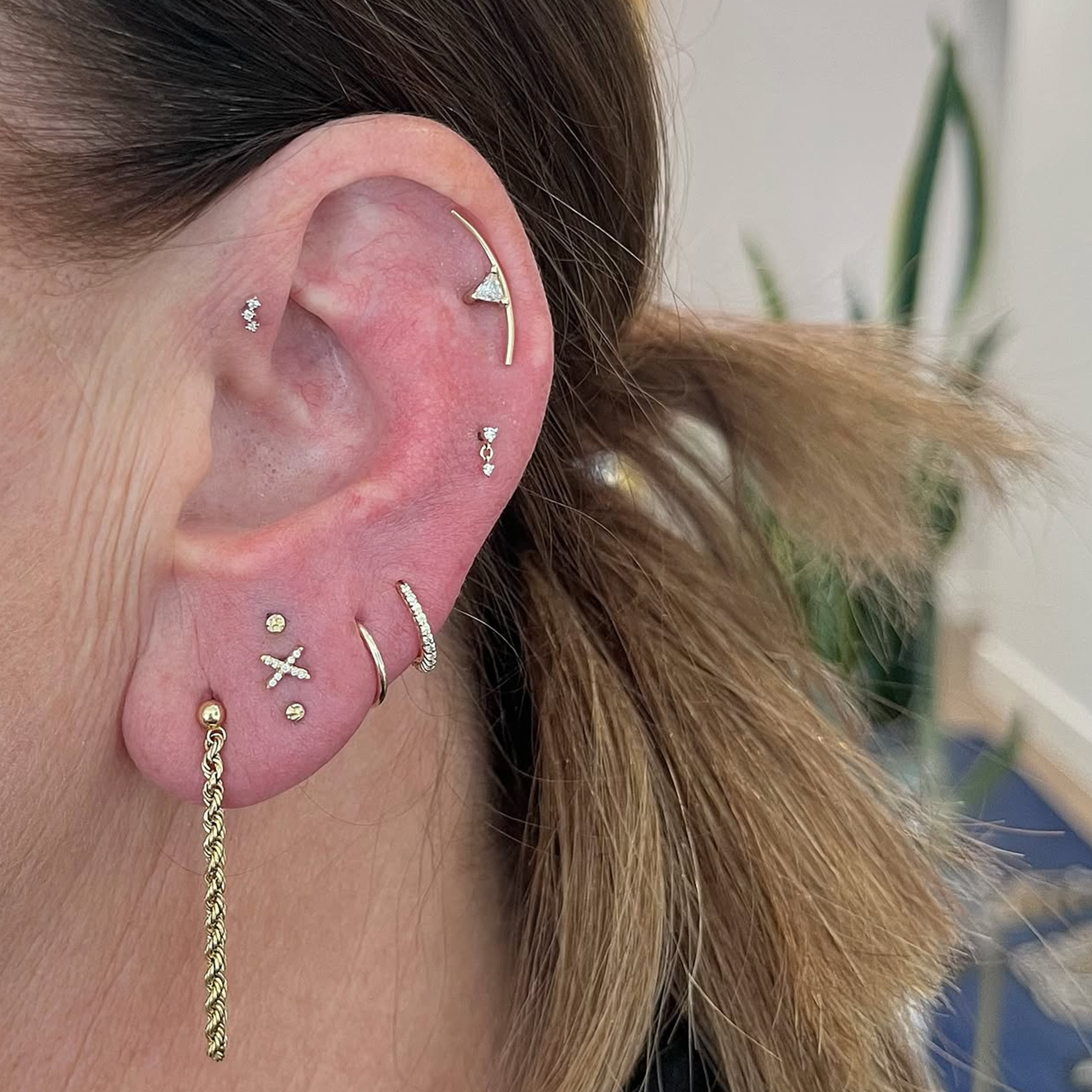 Hypoallergenic, nickel-safe 14k yellow, white or rose gold, made for wear in piercings.