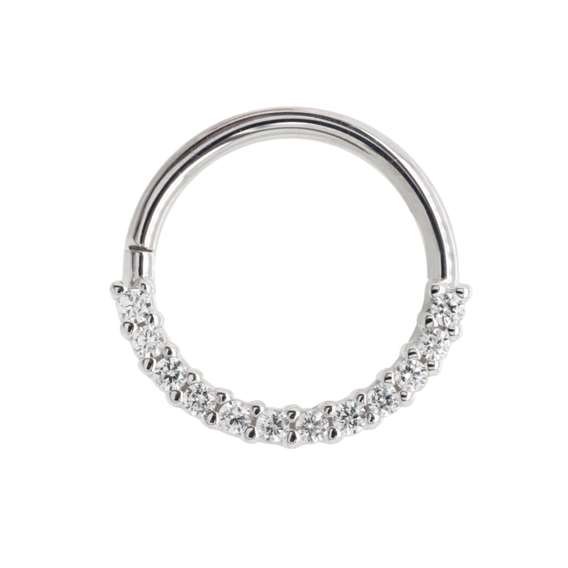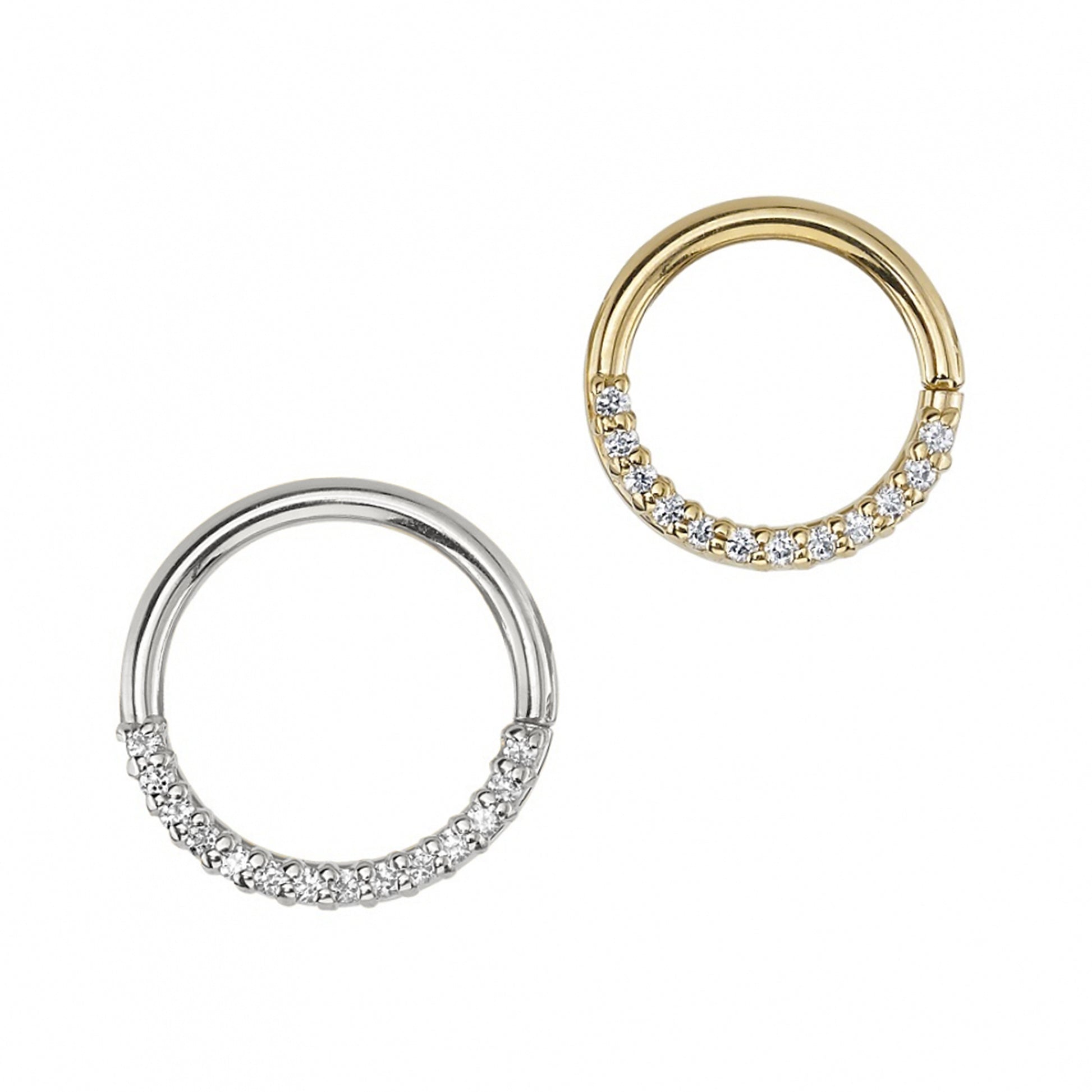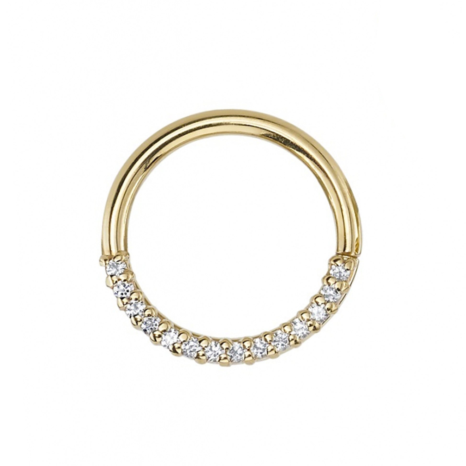 The Oaktier is a 14k gold seam ring lined with white diamonds on one side. It’s a perfect piece for your septum or daith!