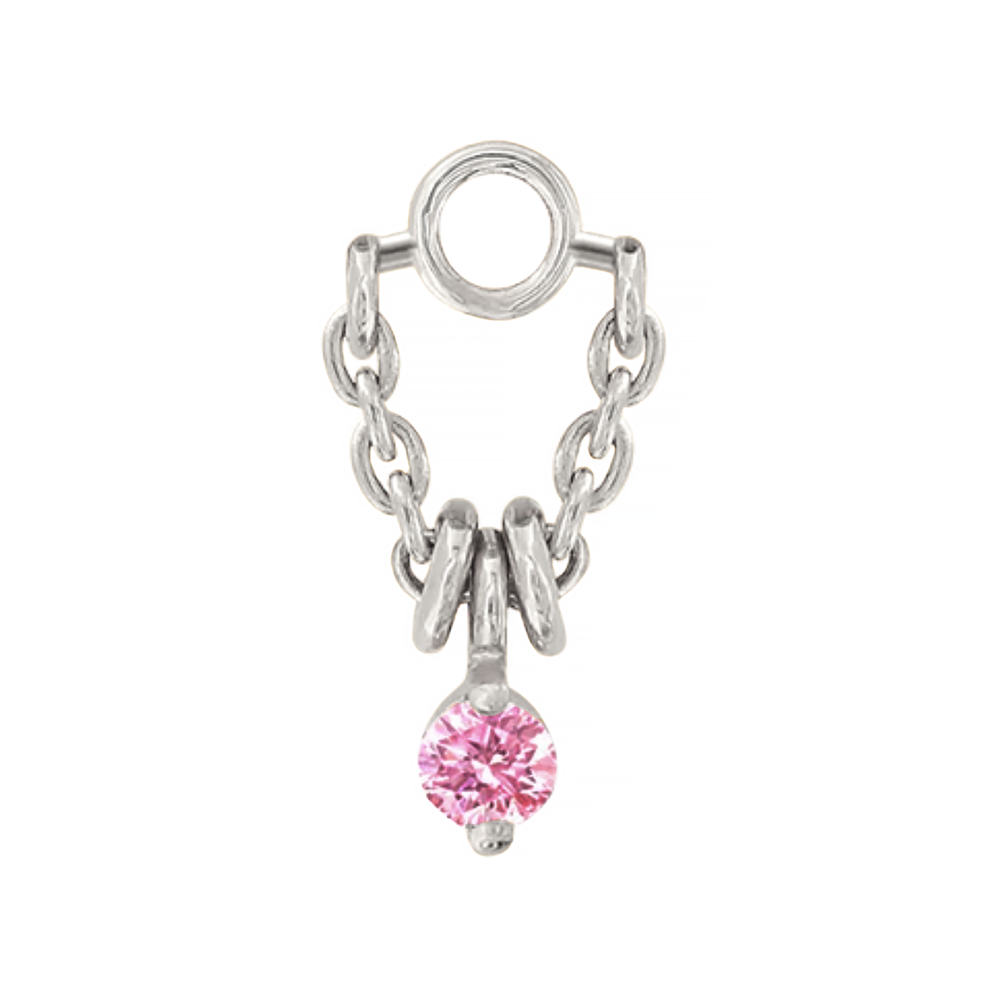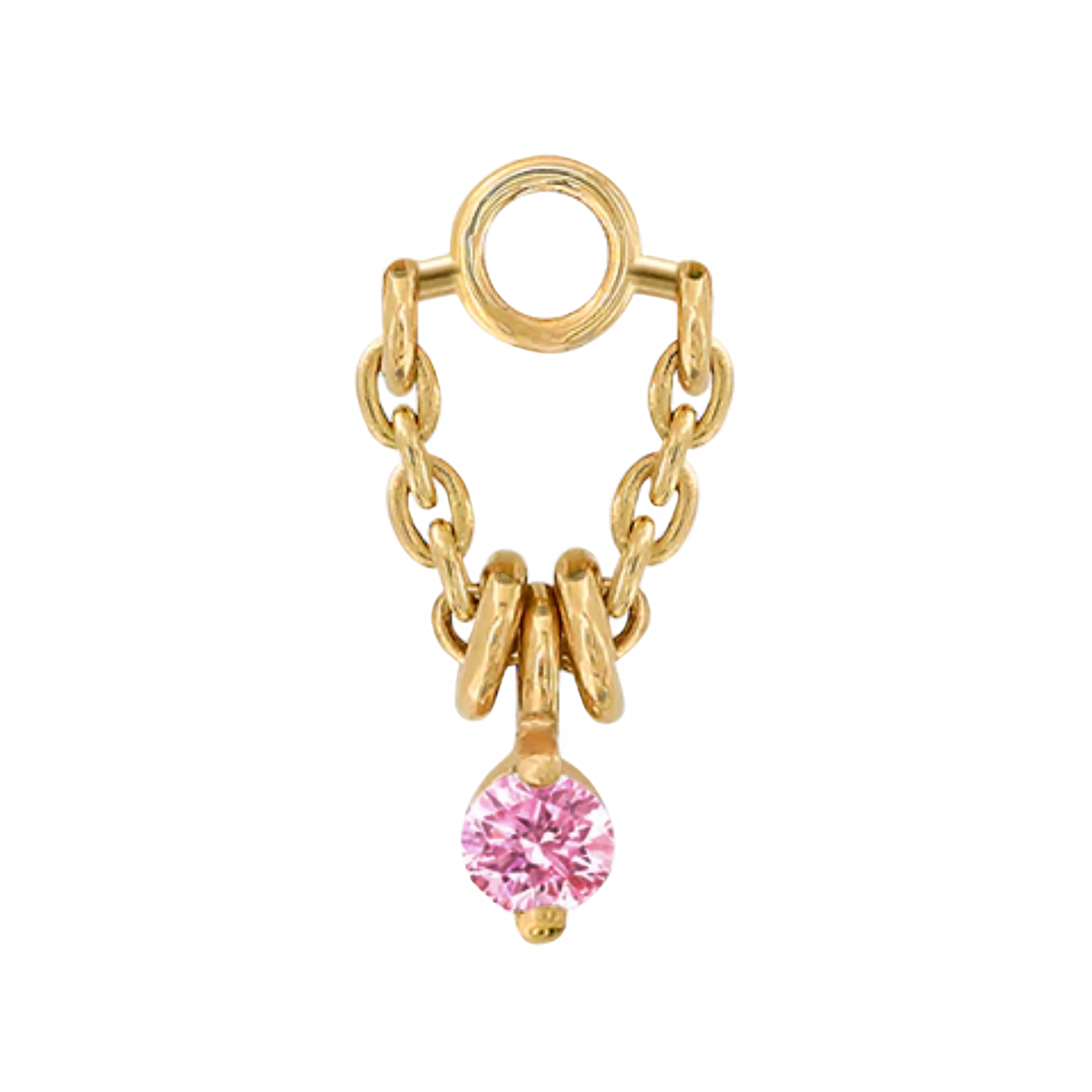 From Pupil Hall, the 1000% Stacked charm features your choice of a white or pink sapphire dangle, sandwiched between two gold beads for added texture.