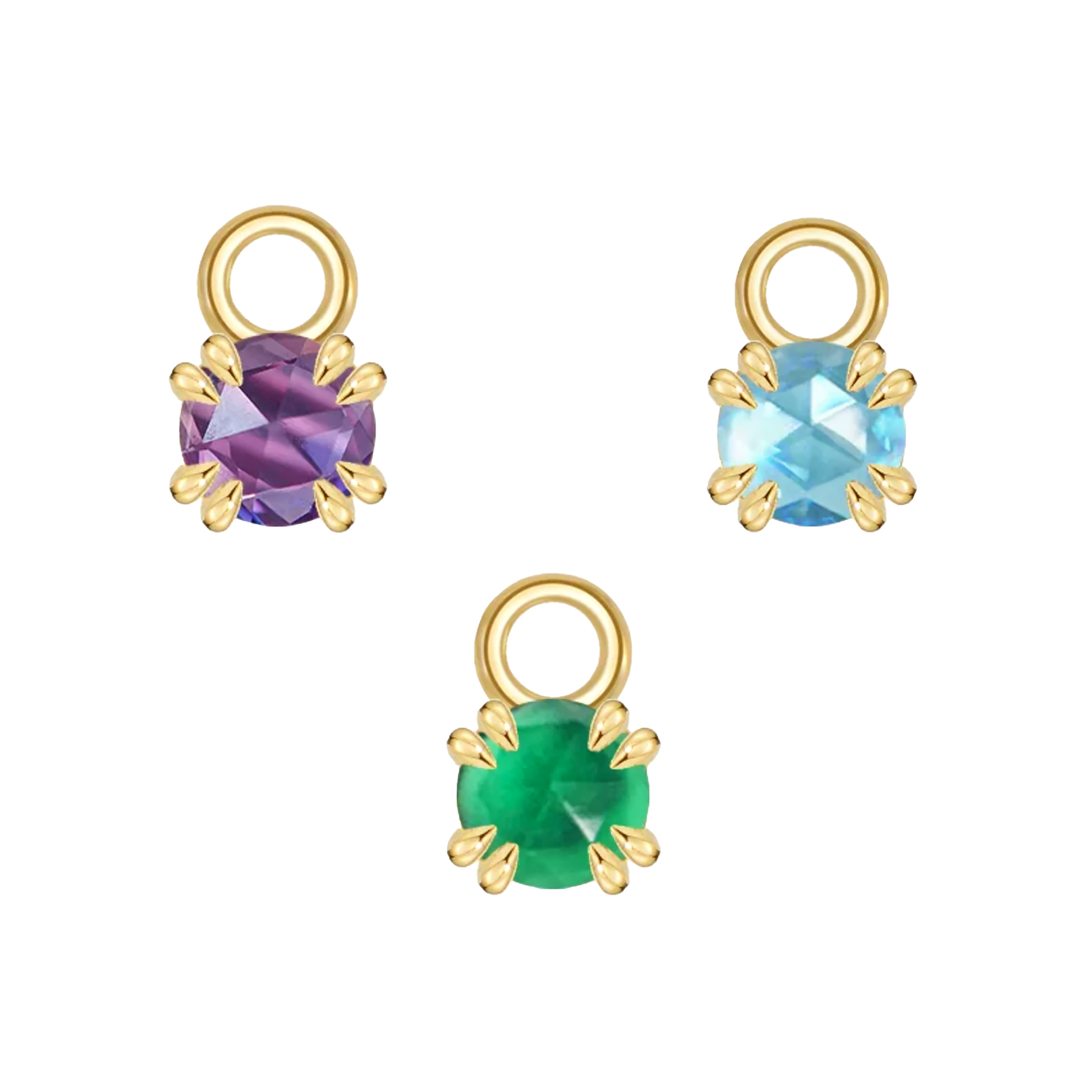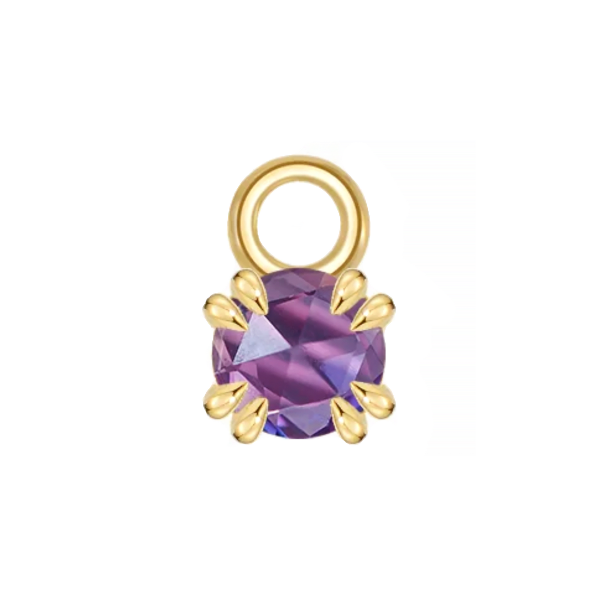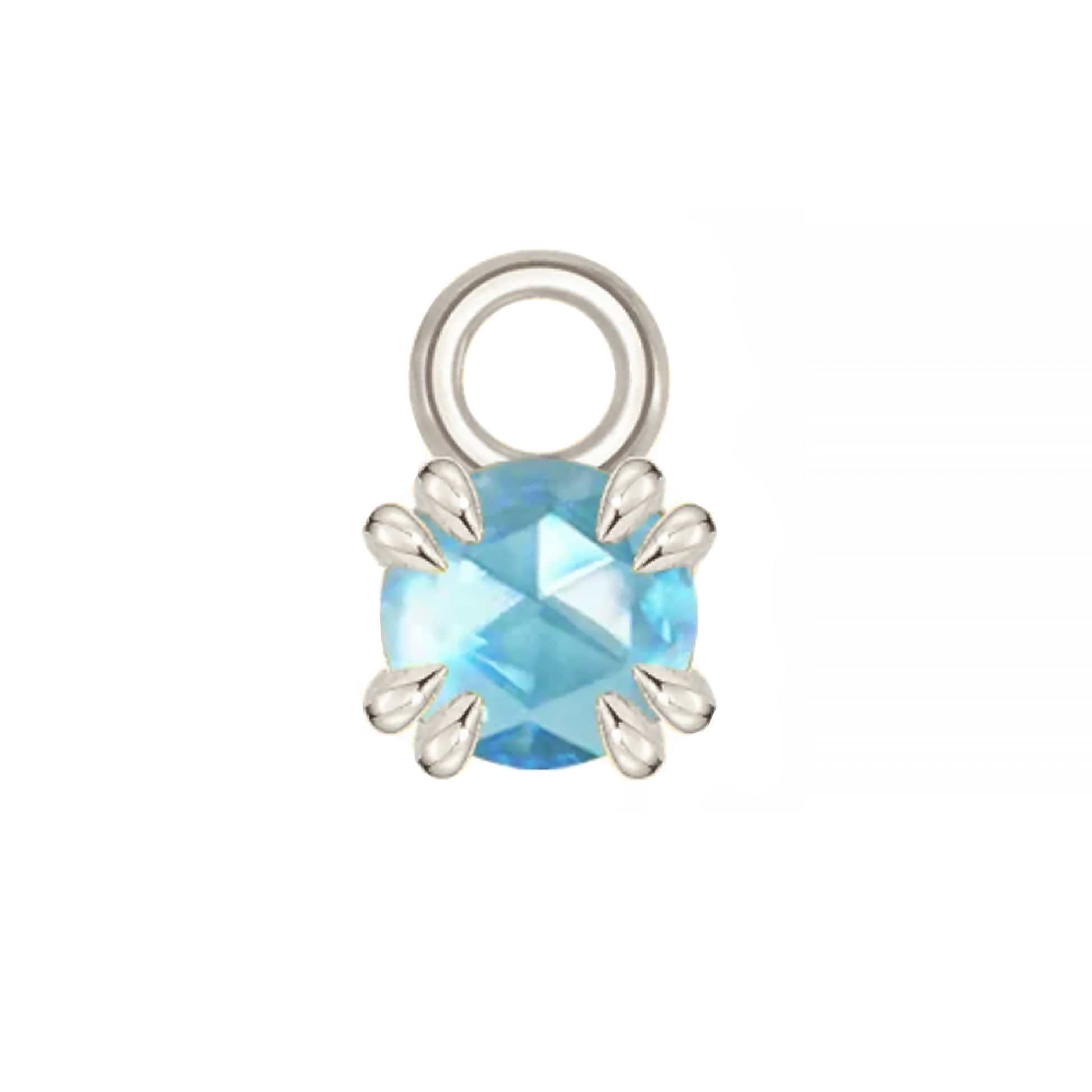 A simple, yet stunning charm from Modern Mood. Each piece has a double claw set round rose cut gemstone; the perfect addition to your seam rings.