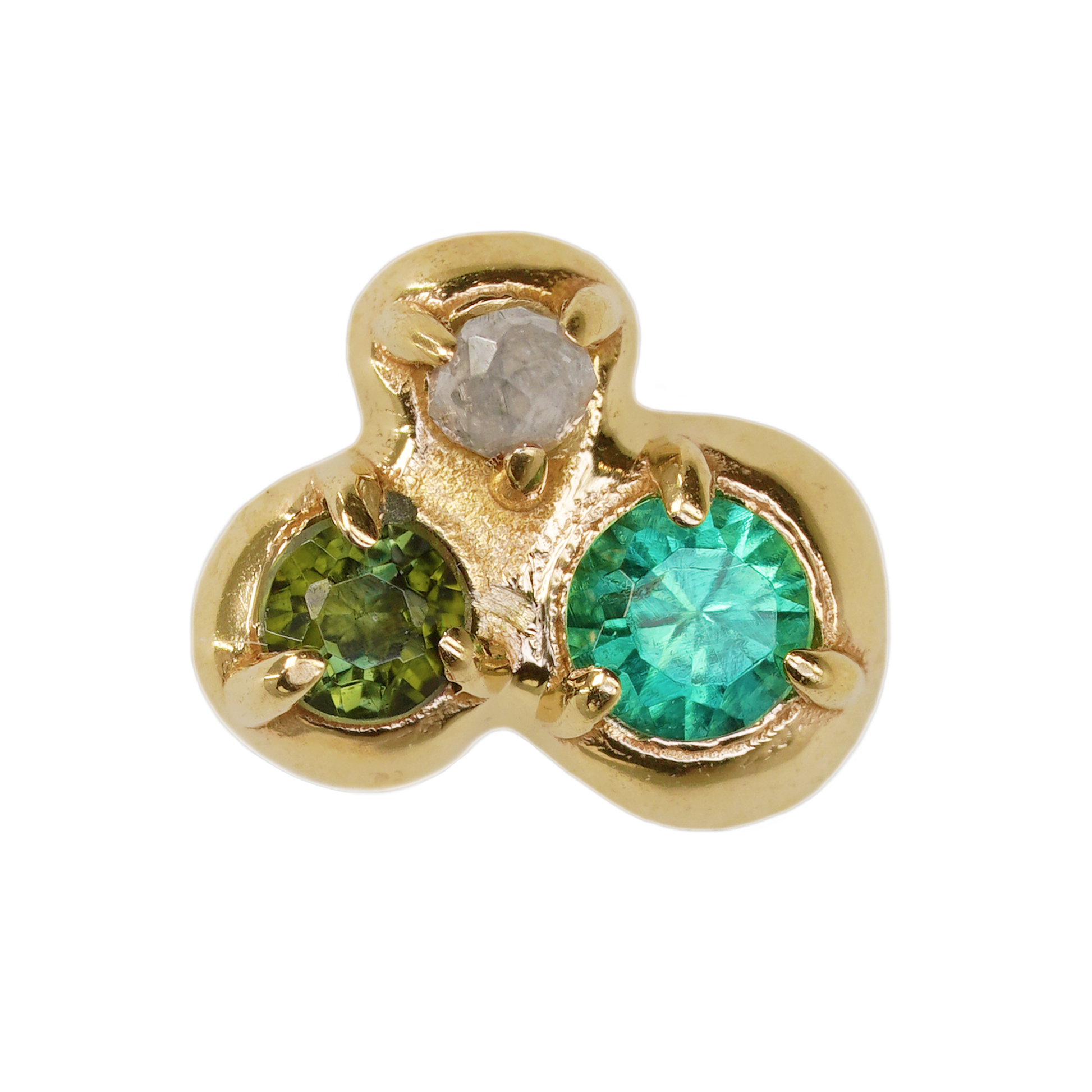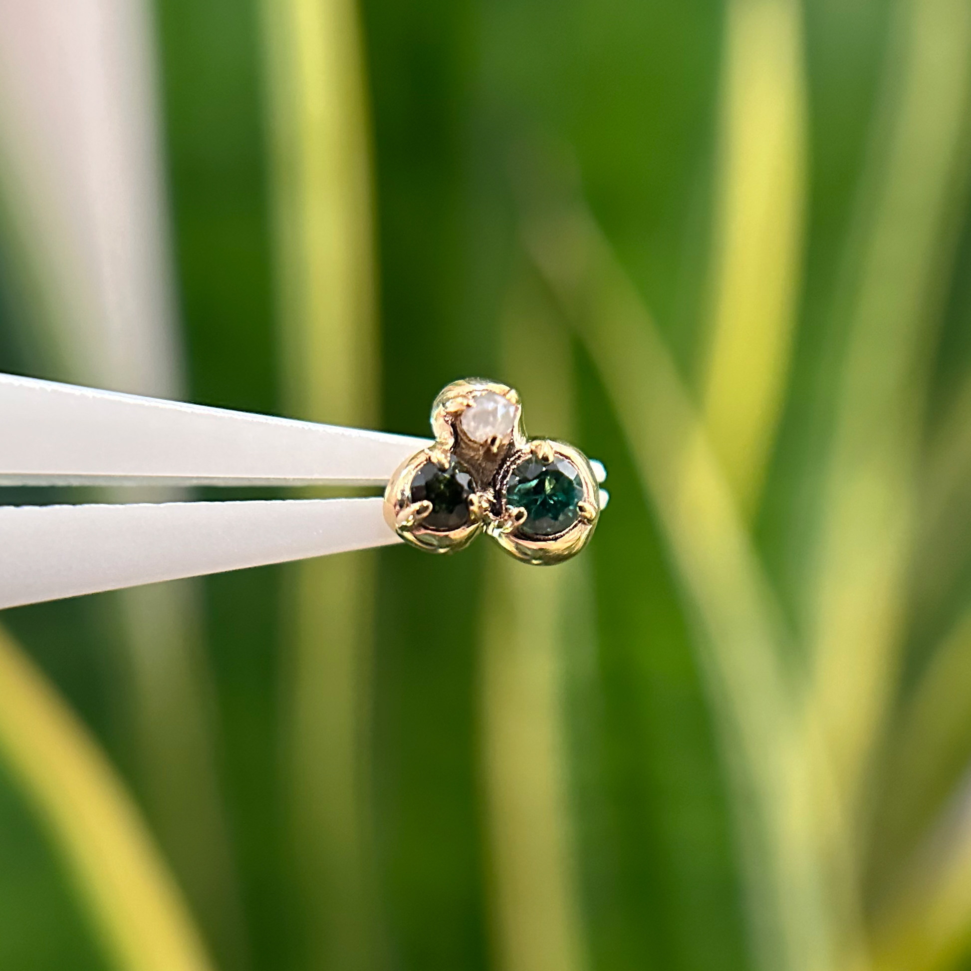 One of our favorite pieces from this latest Sacred Symbols drop, this gemstone cluster threadless end features a grey diamond, emerald and green tourmaline.