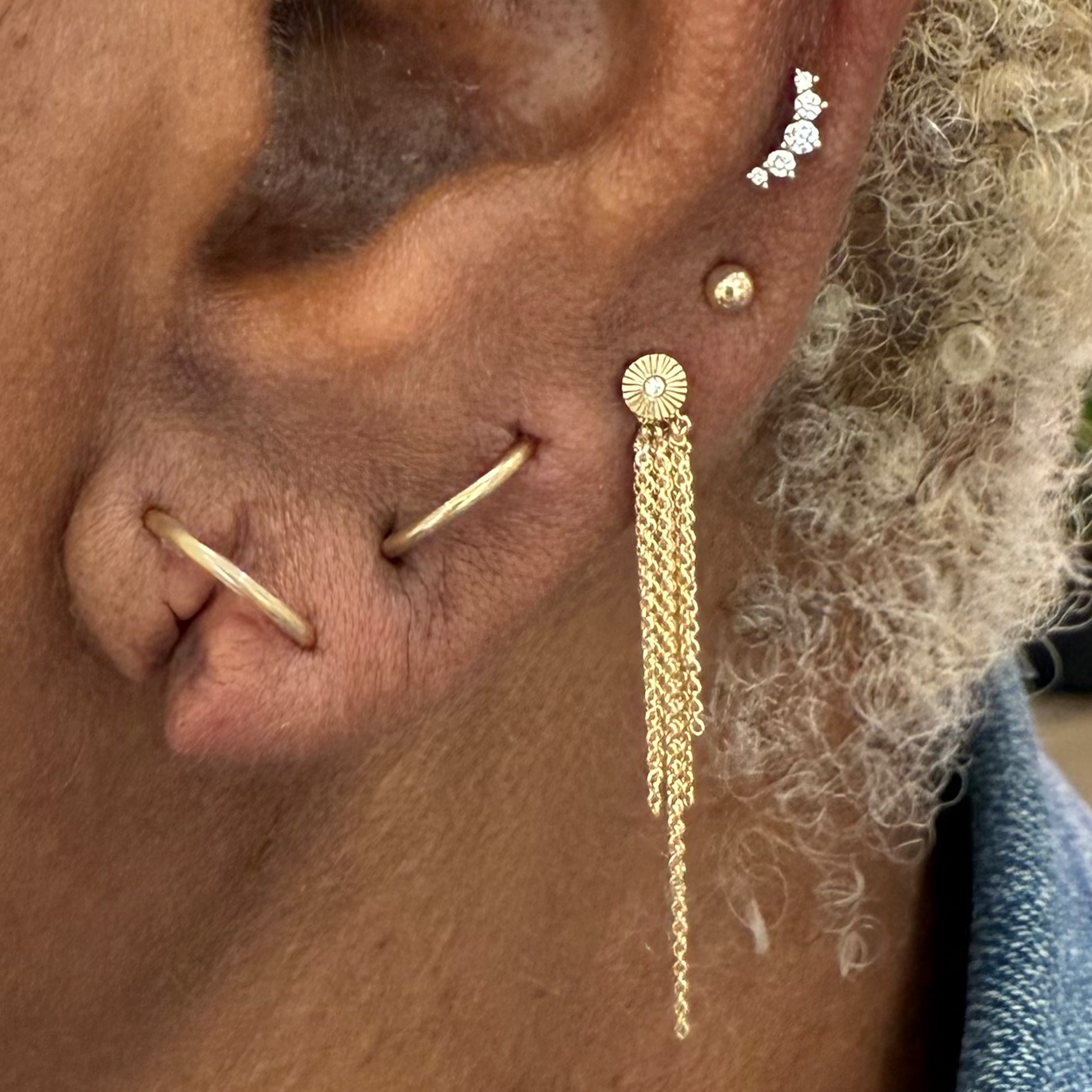 New in from Tether! The Tidefall charm is a literal waterfall of gold chains to dangle from your piercings.