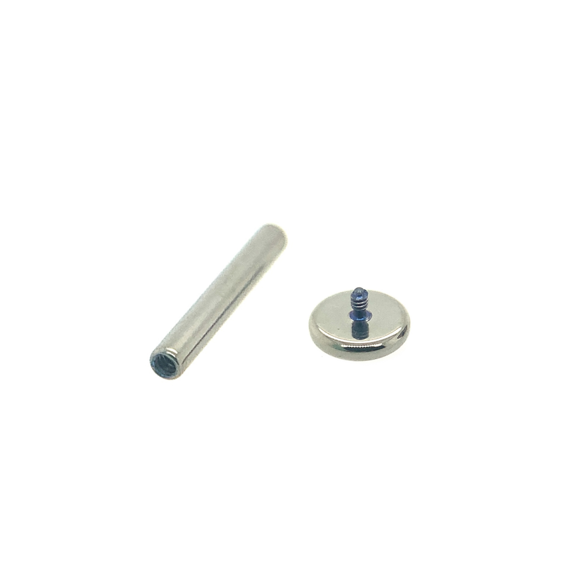 High quality ASTM F-136 implant grade titanium threaded 16 gauge and 14 gauge industry standard shafts and discs. Made by Anatometal for wear in body piercings.