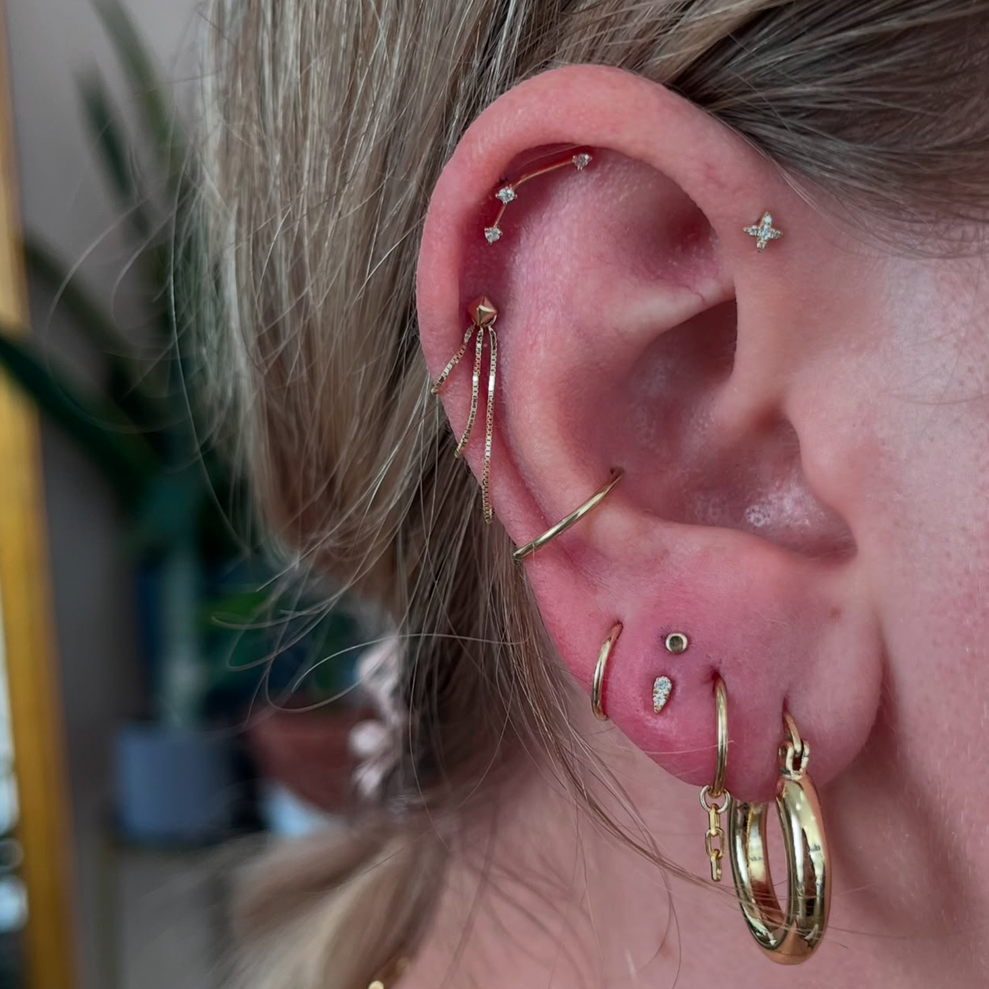 Hypoallergenic, nickel-safe 14k yellow, white or rose gold, made for wear in piercings.