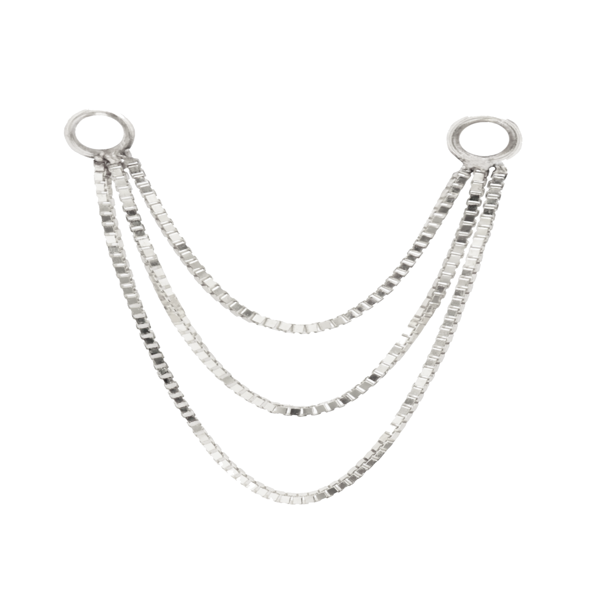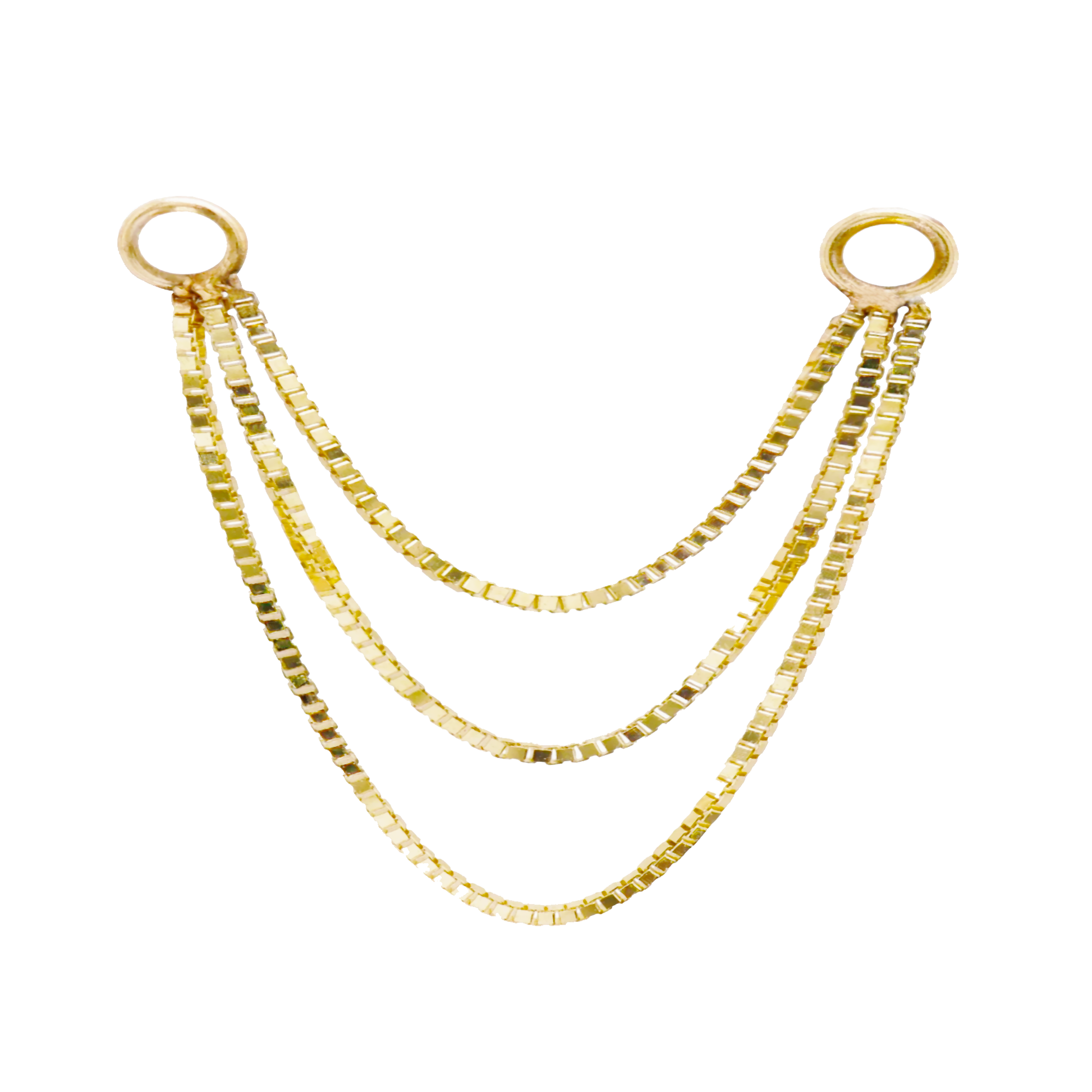 Use this sparkly gold triple box chain to connect two studs or dangle it from an orbital.